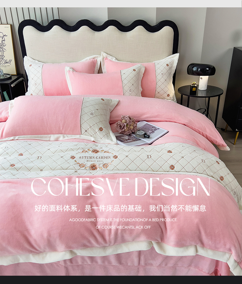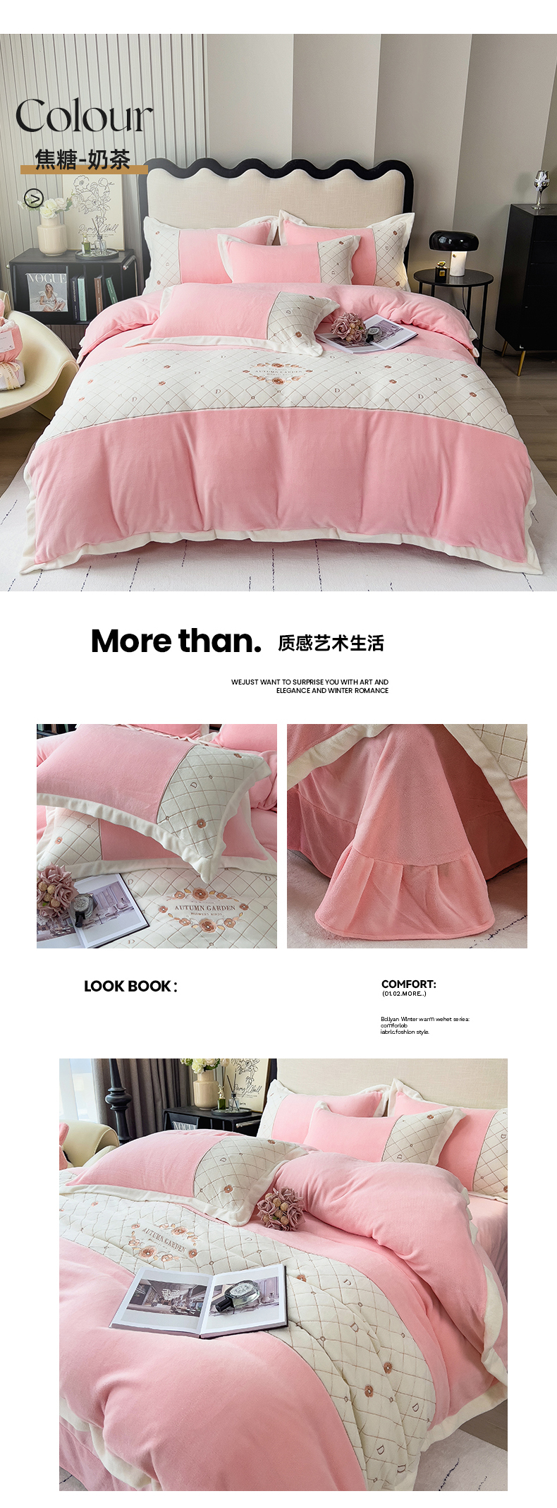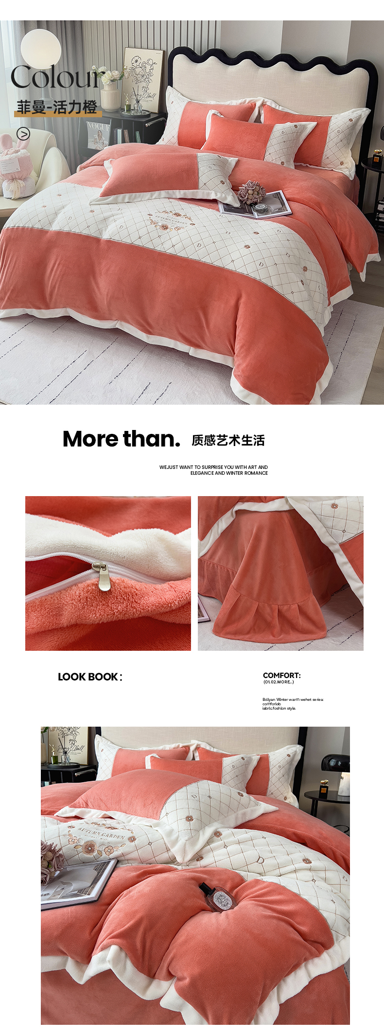 (总)绒世界 2025秋冬小香风香奈系列牛奶绒四件套,爱马仕橙,都市灰,蜜桃粉,奶昔白,秋波蓝,薰衣紫,樱花粉