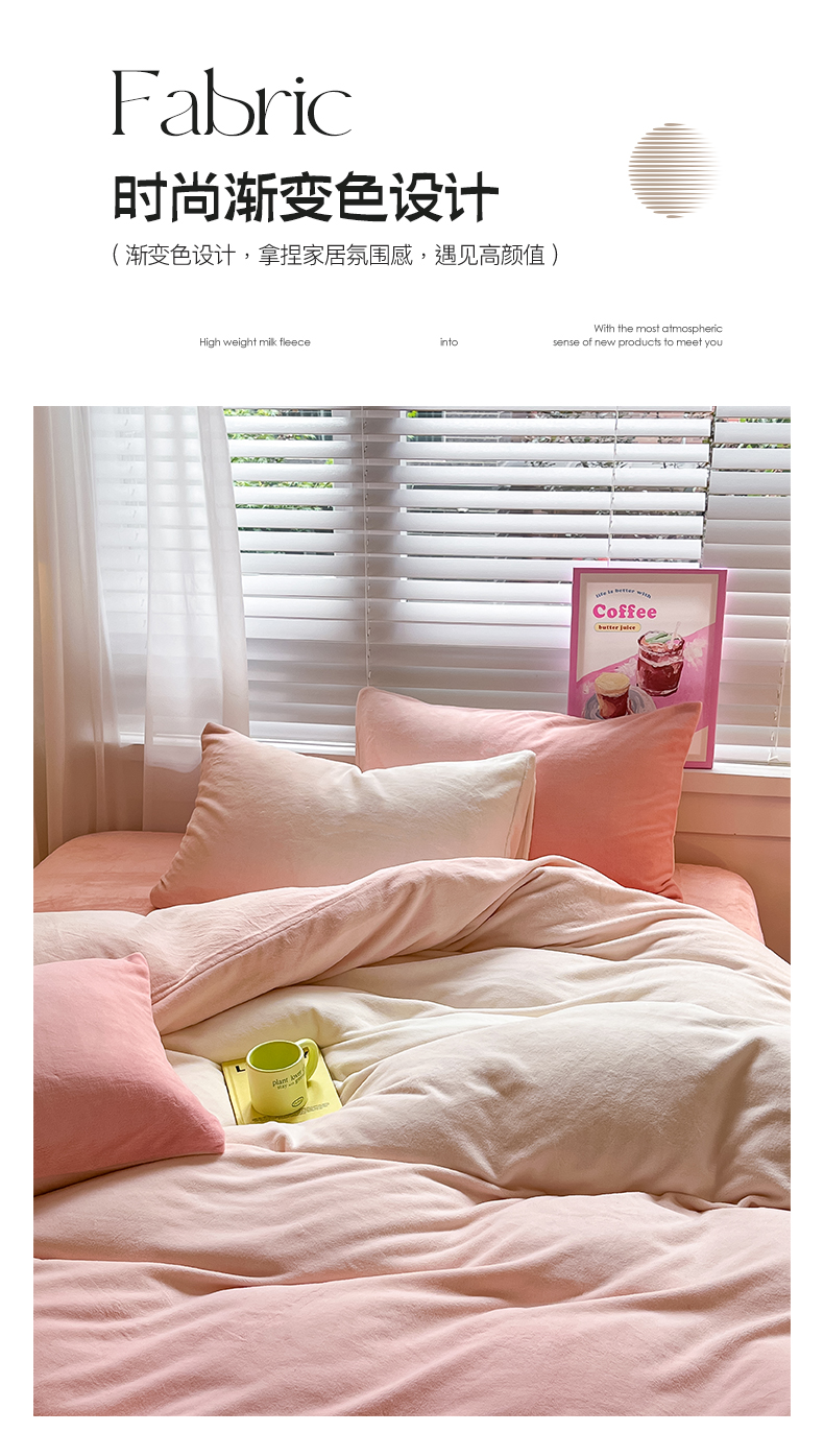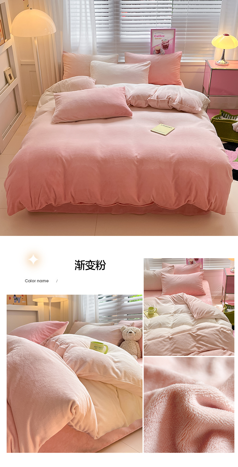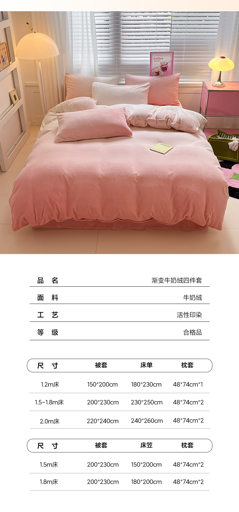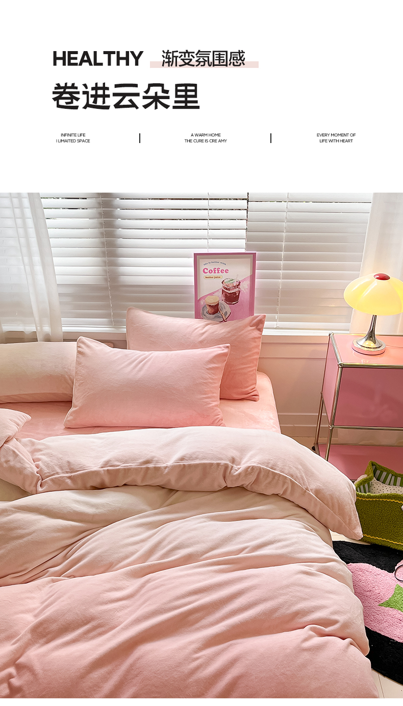 商品名称:雅居纺家纺 2023渐变系列牛奶绒四件套 渐变粉