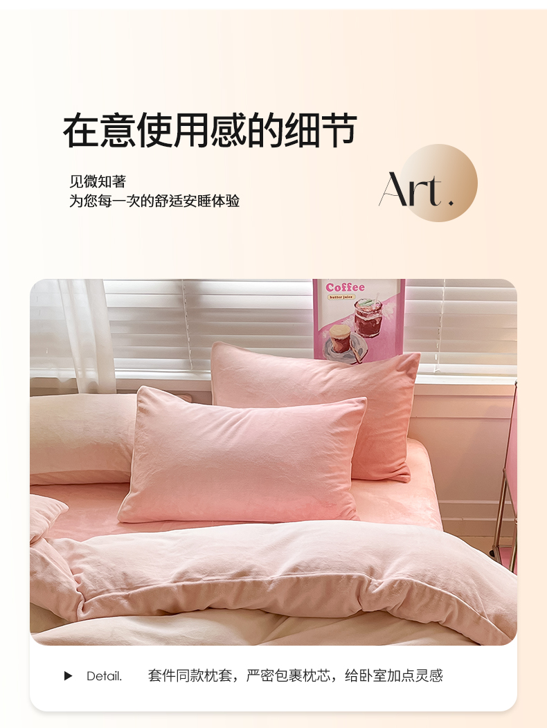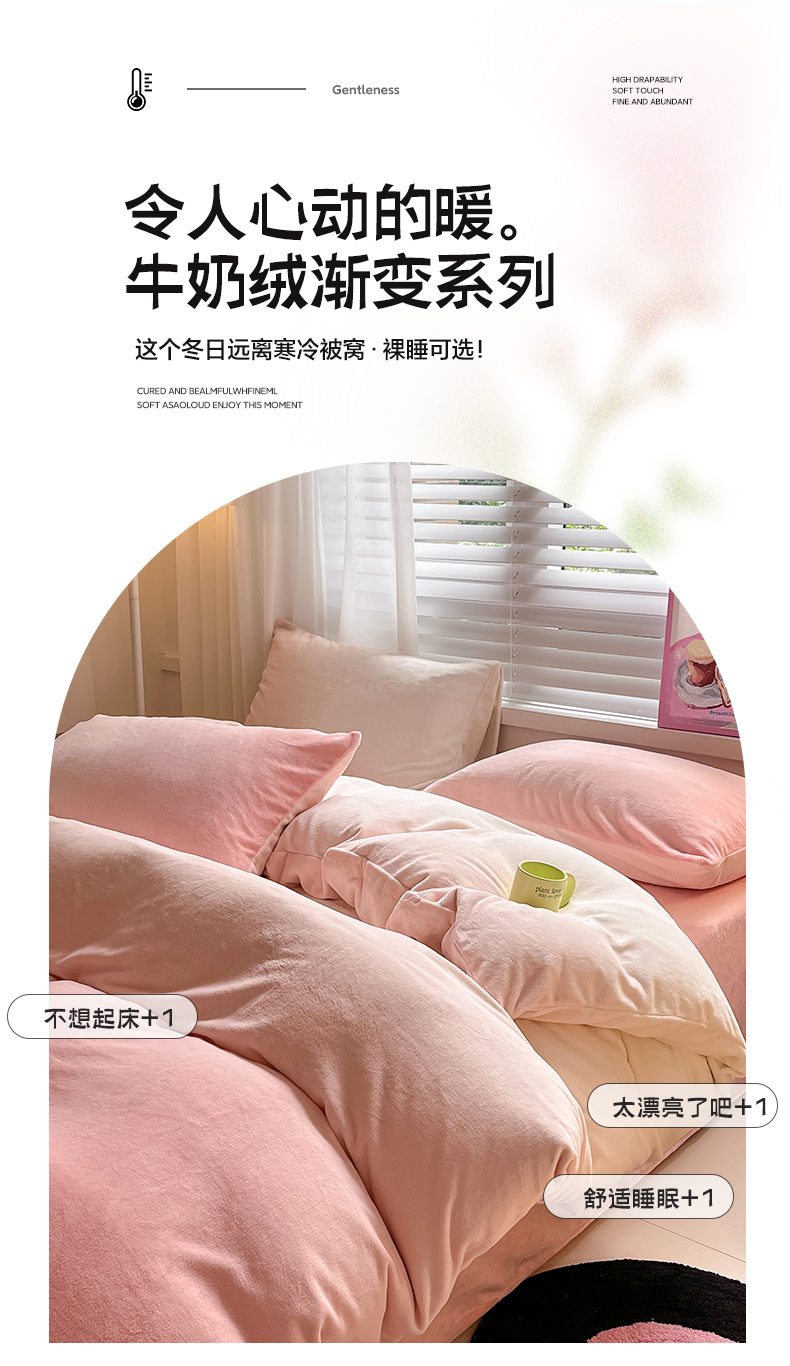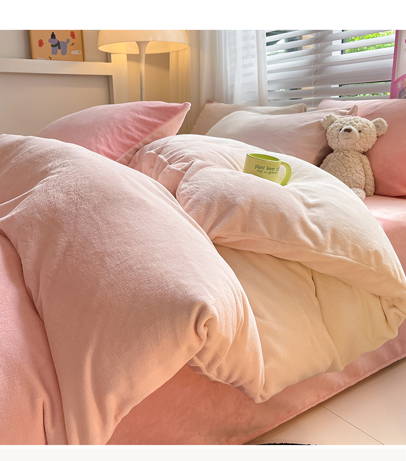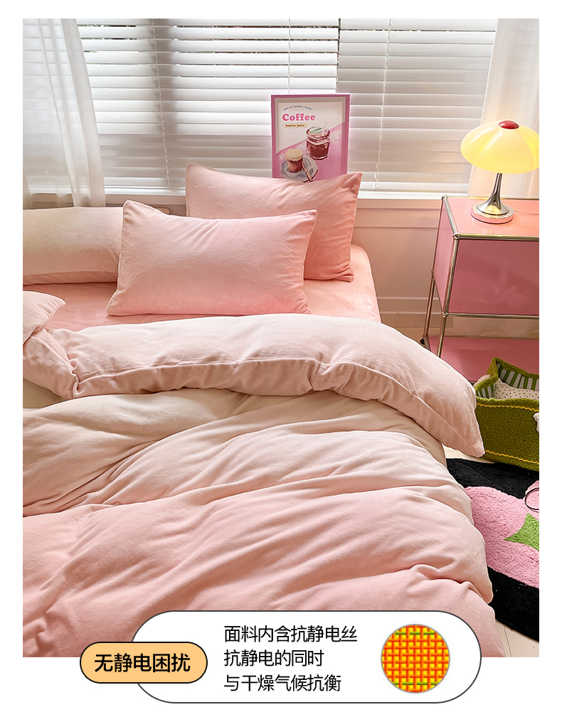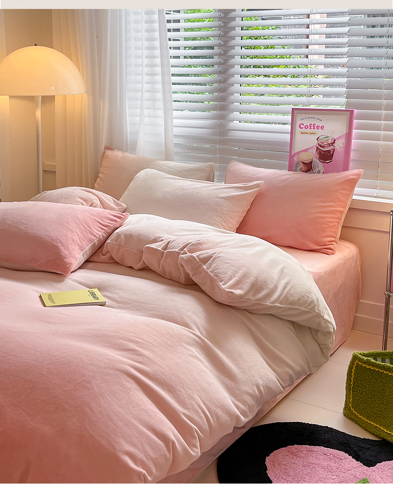 商品名称:雅居纺家纺 2023渐变系列牛奶绒四件套 渐变粉