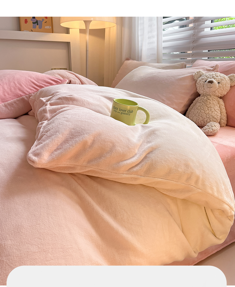 雅居纺家纺 2023渐变系列牛奶绒四件套 渐变粉