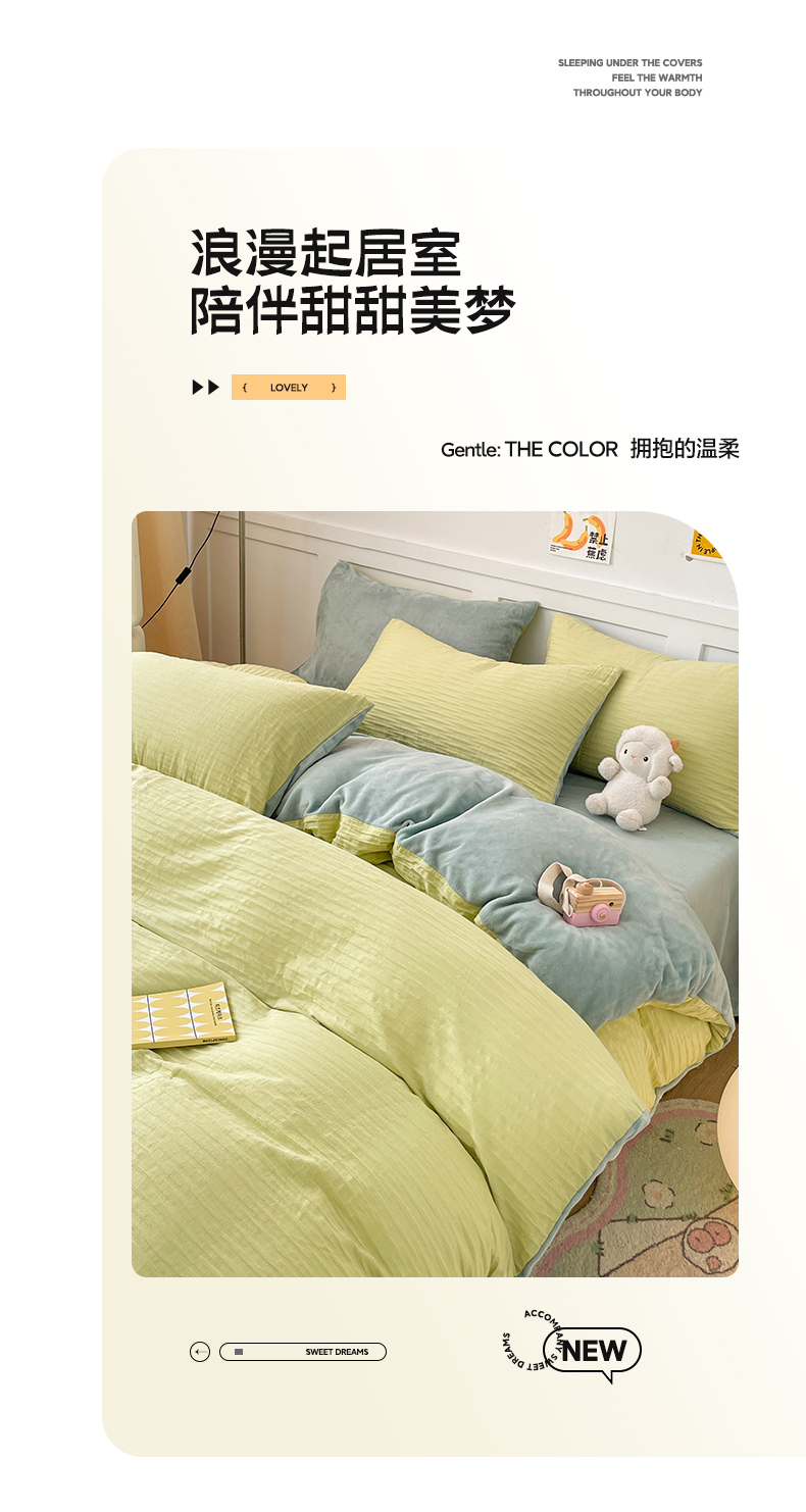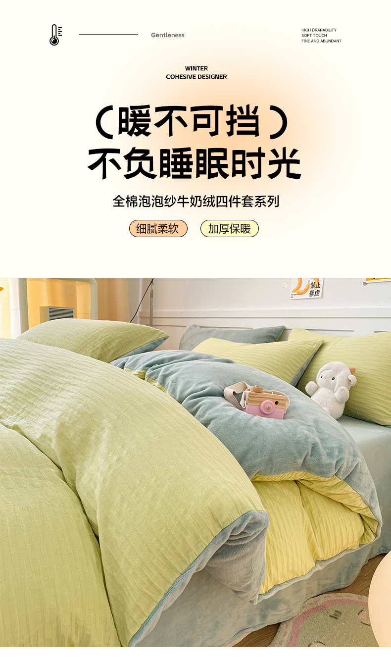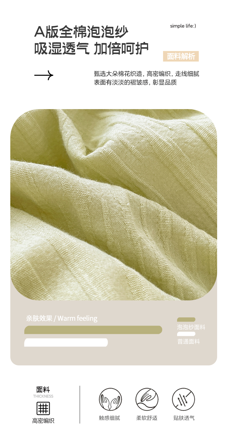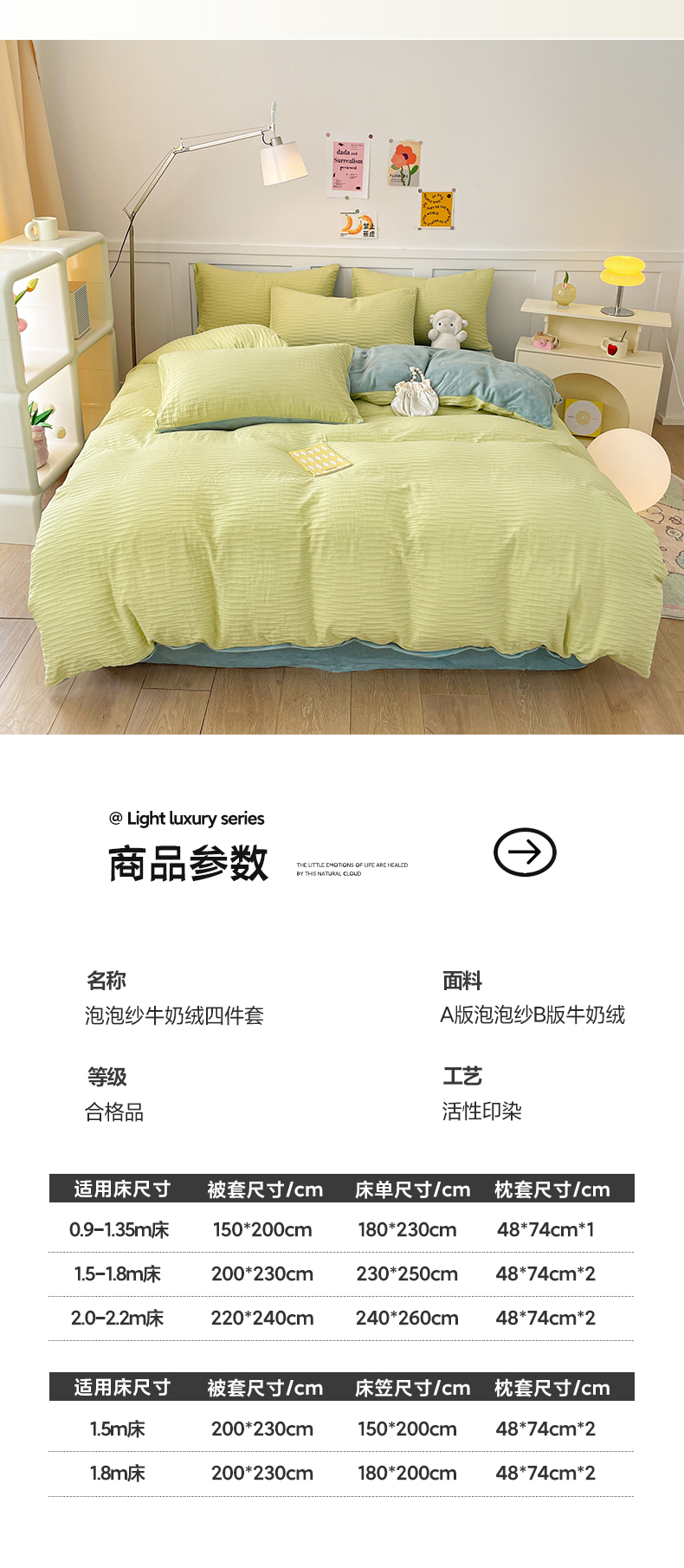 商品名称:(总)雅居纺家纺 2023新款全棉泡泡纱牛奶绒四件套