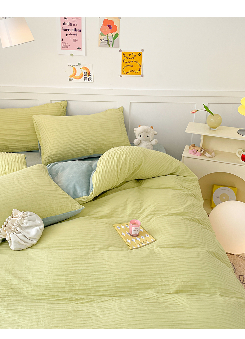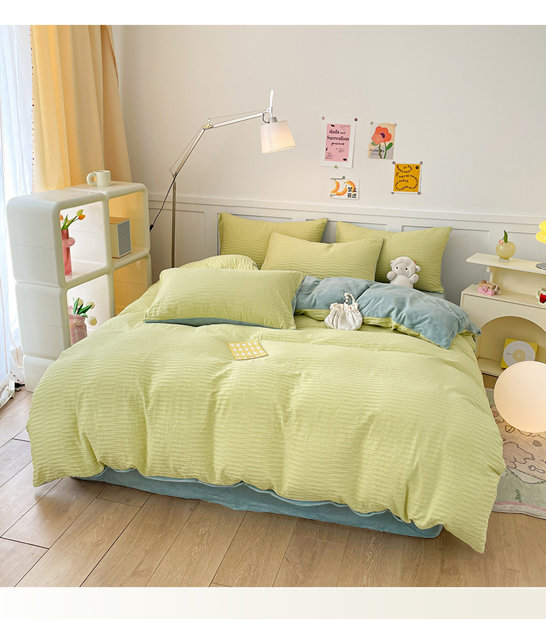 (总)雅居纺家纺 2023新款全棉泡泡纱牛奶绒四件套