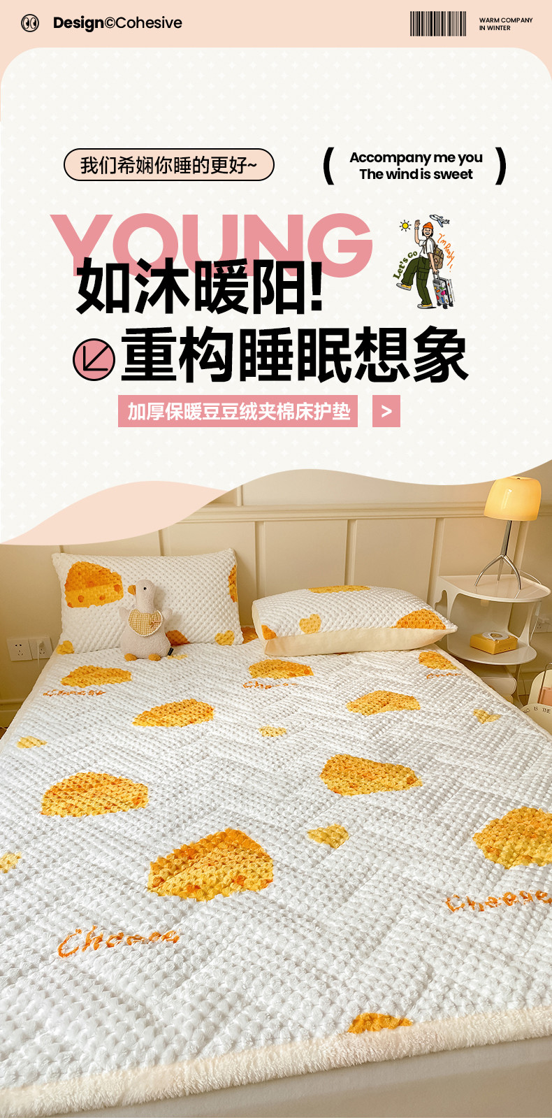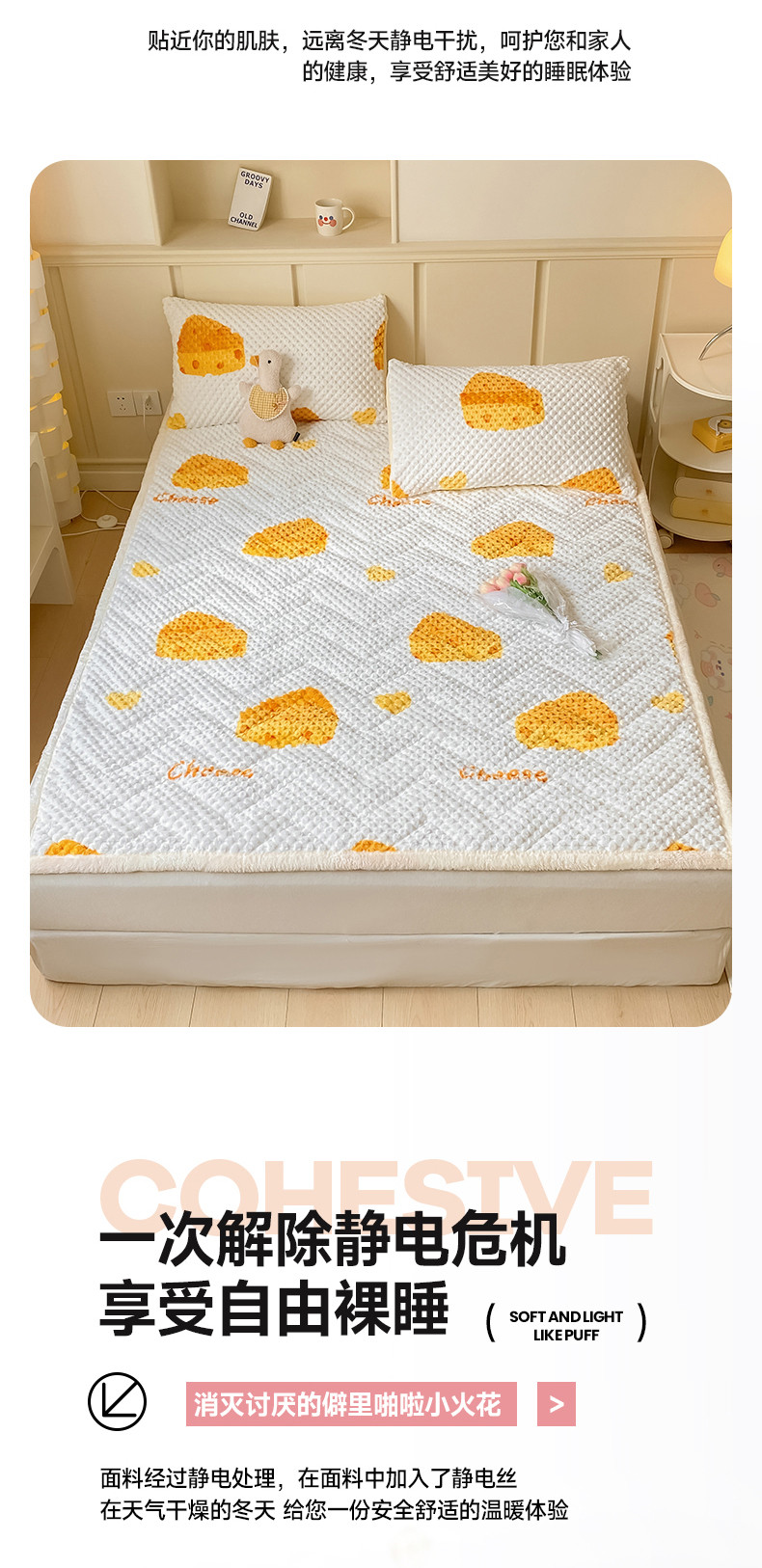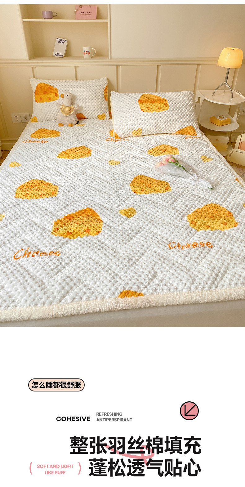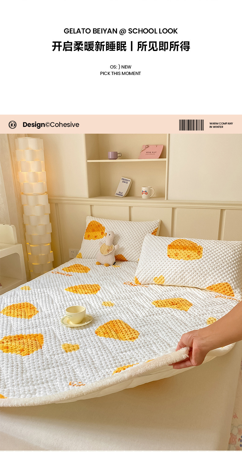 商品名称:澳梵家居 2023新款豆豆绒夹棉床护垫 芝士奶酪