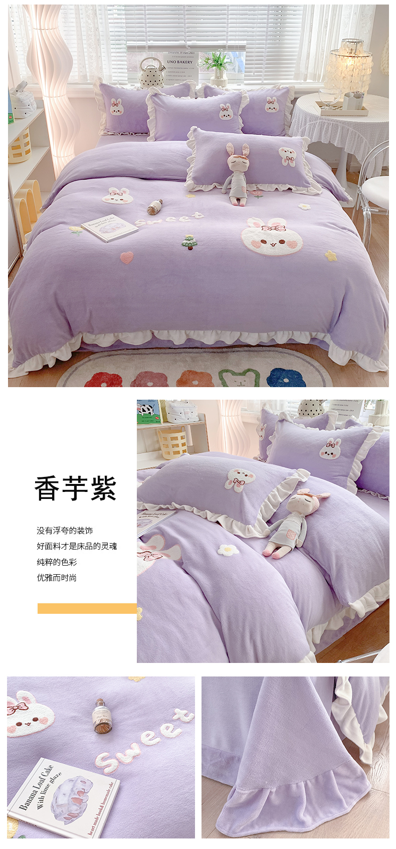 商品名称:芯贝儿 2023款小清新牛奶绒毛巾绣四件套--汇总 香芋紫