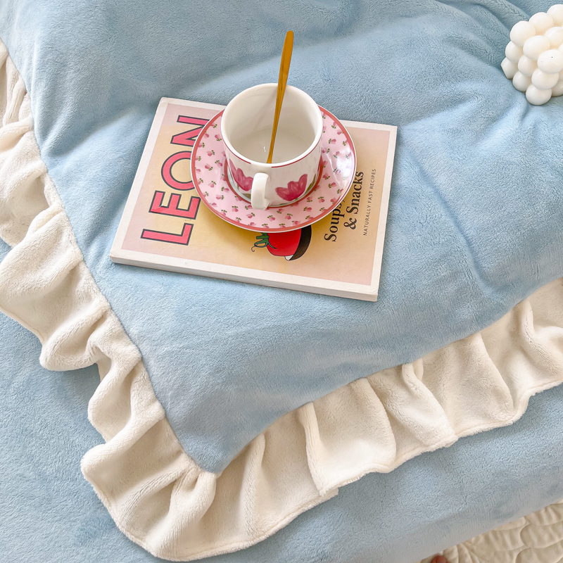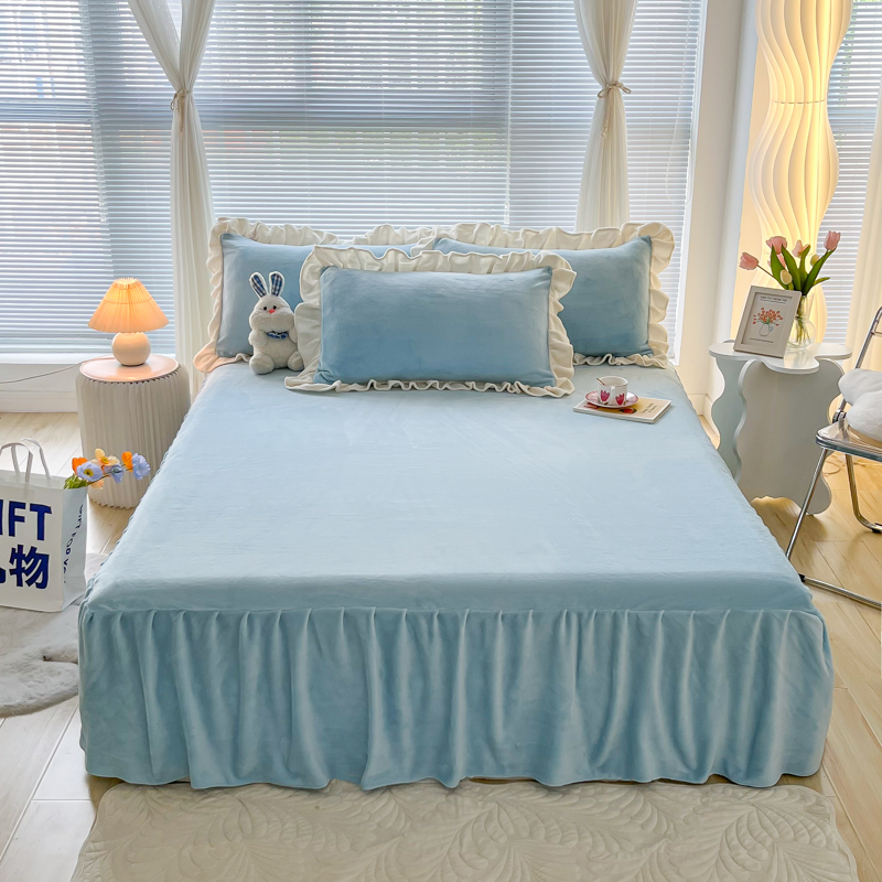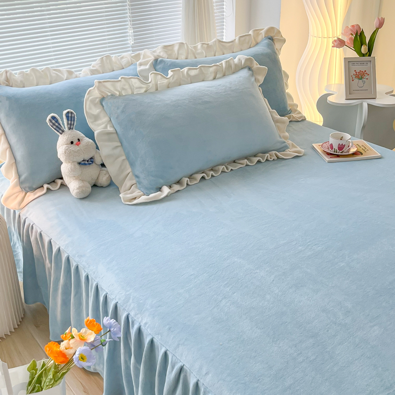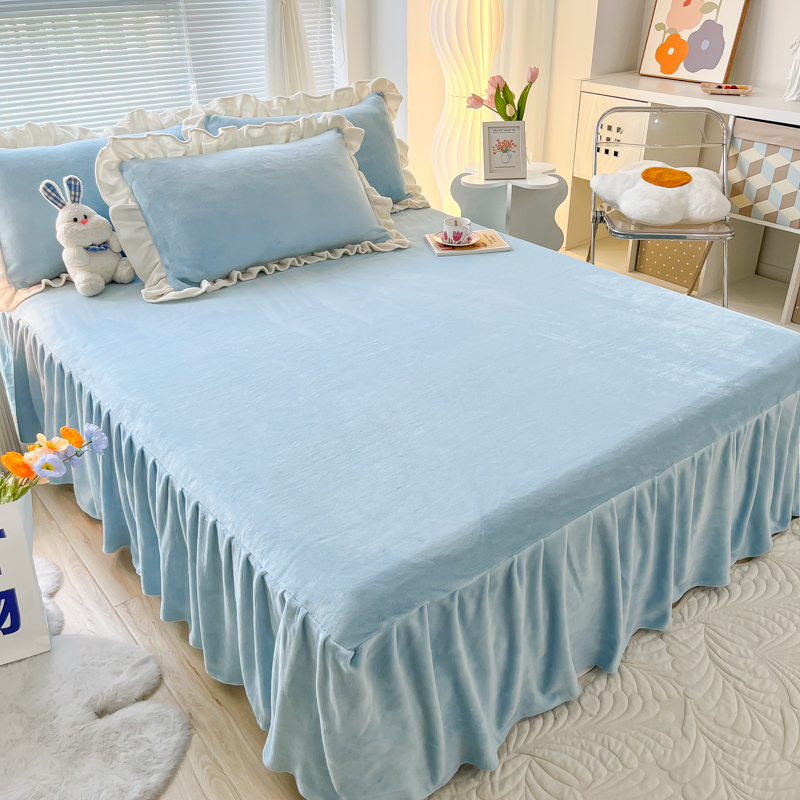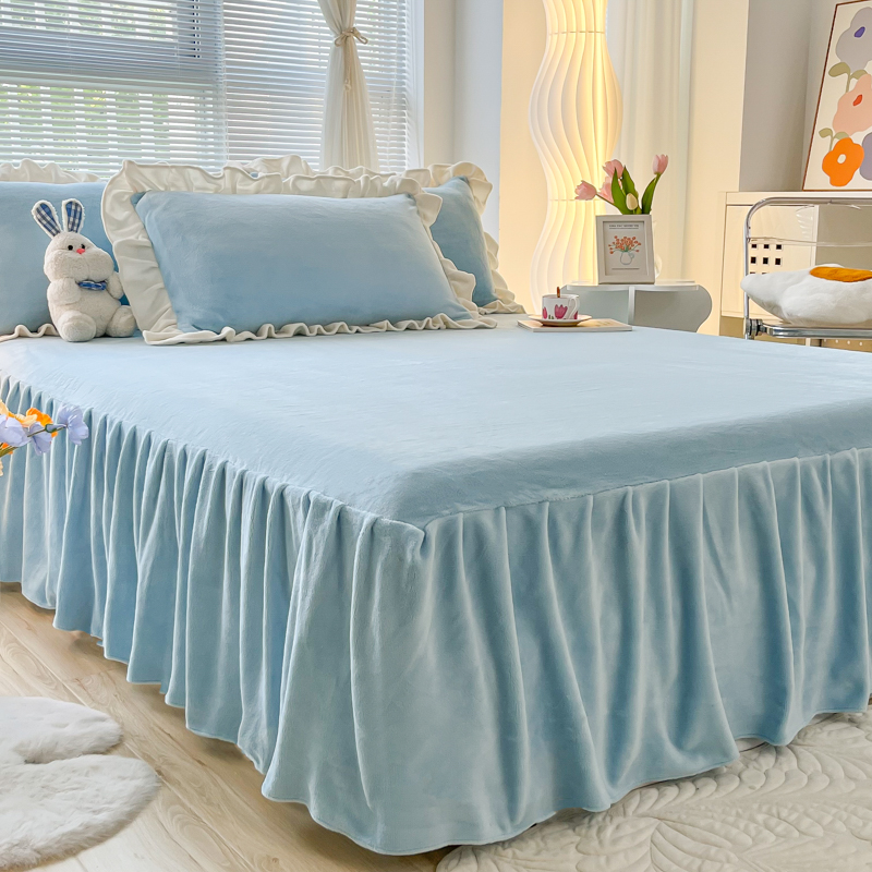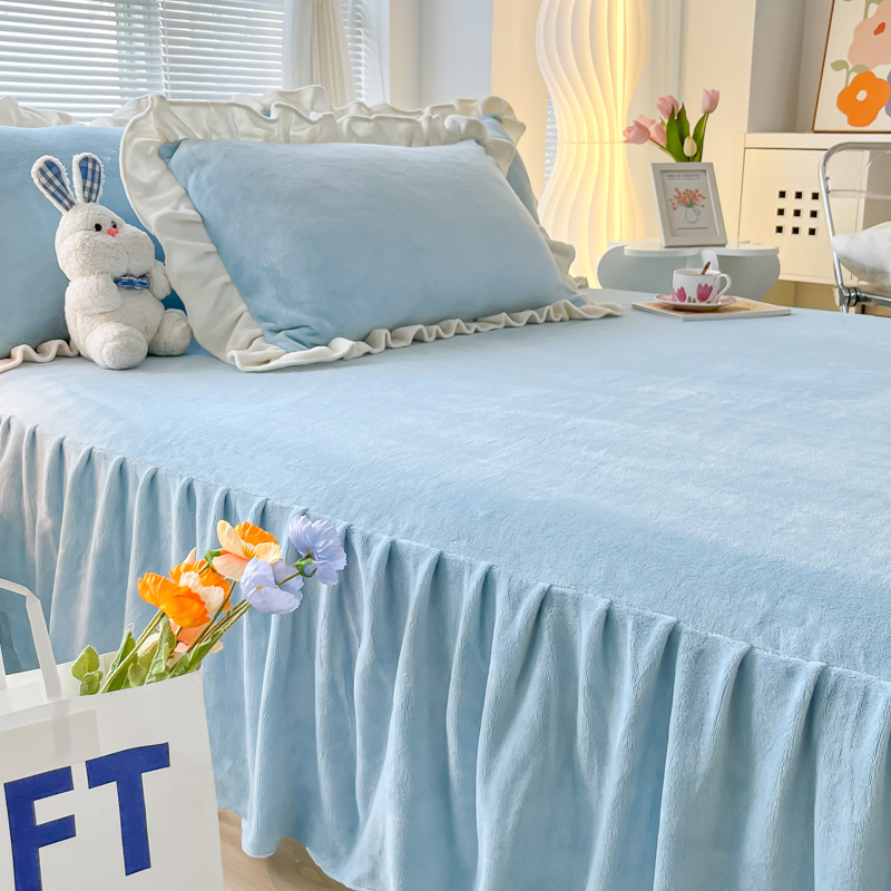 商品名称:十里居 2023新款纯色韩版花边牛奶绒单床裙三件套 柔和蓝