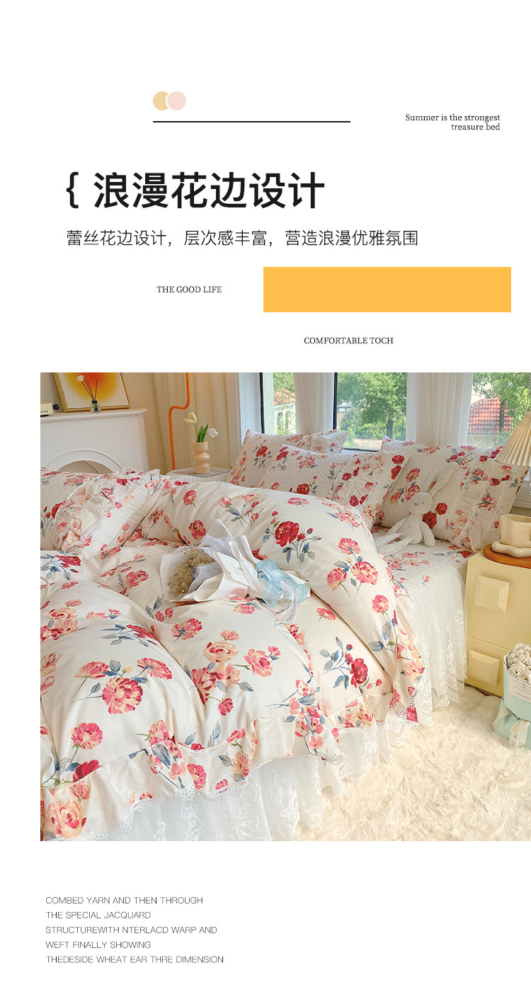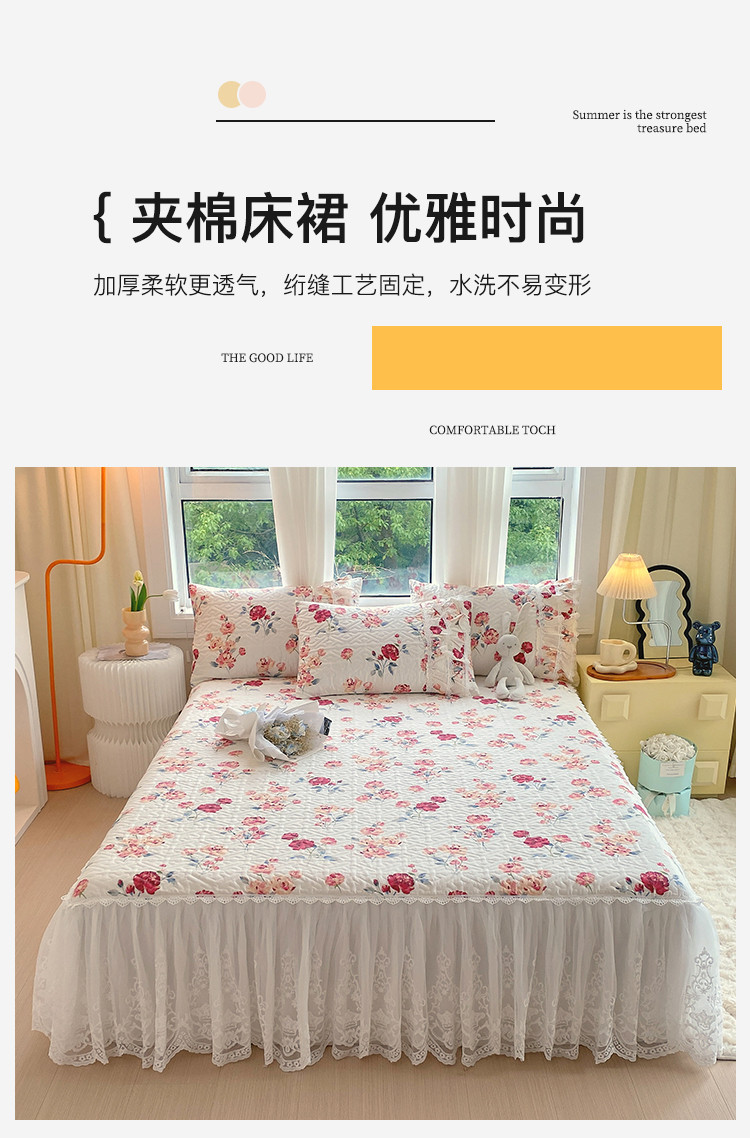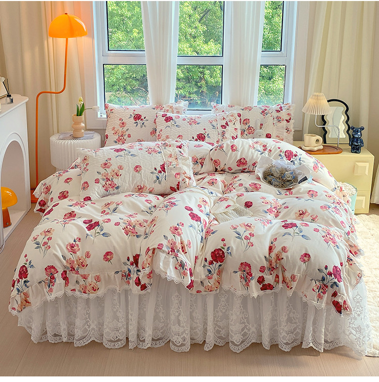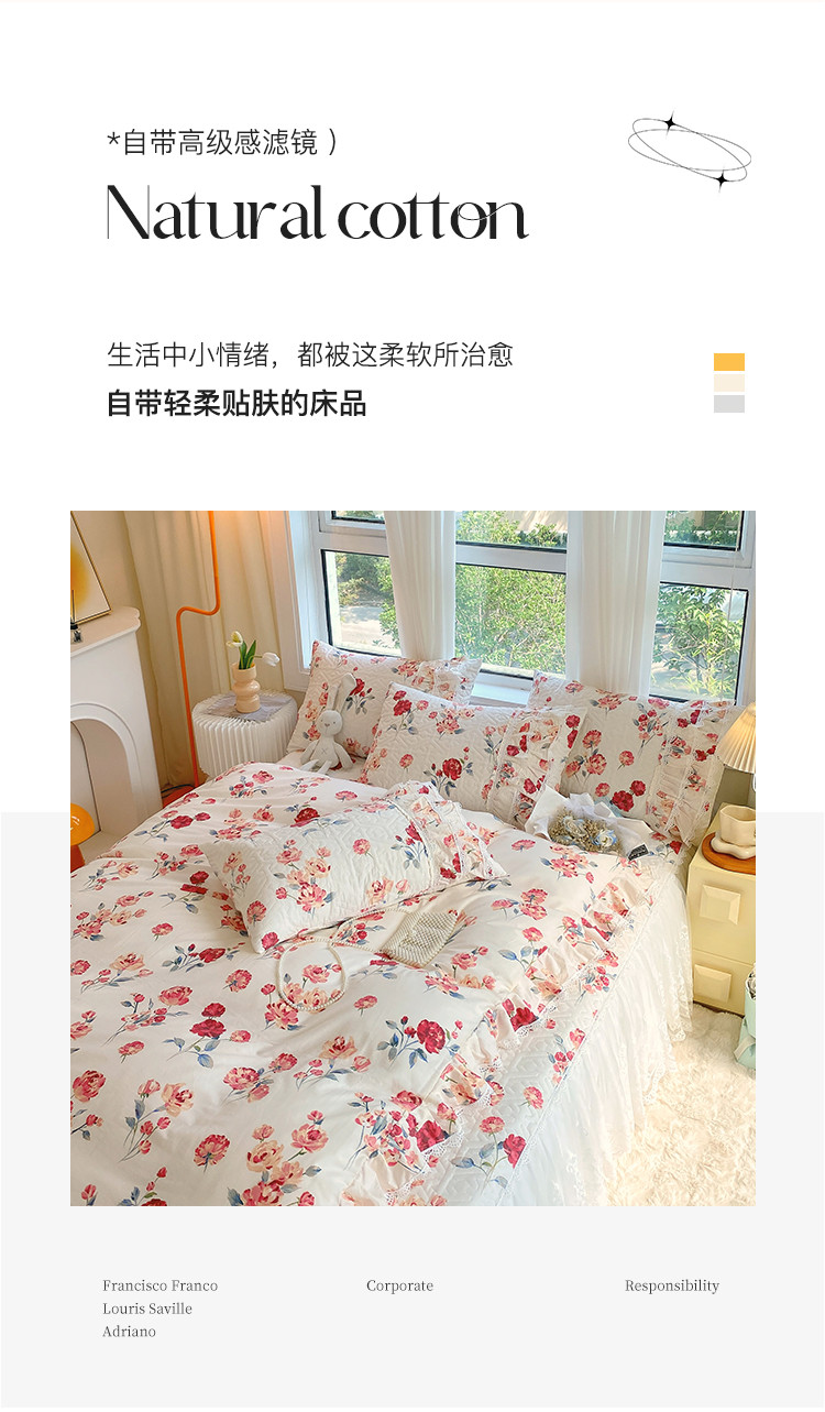 当前位置: 91家纺网 > 商品网购 > 床品套件 > 四件套 > 全棉普通四件套 > 罗艺轩 2024新款全棉蕾丝夹棉床裙巴黎春天系列四件套 复古花季