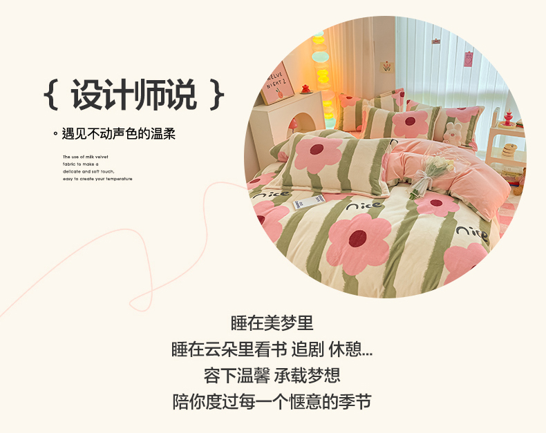 商品名称:呗旺鹿 2023新款加厚高克重印花牛奶绒四件套直播爆款 花漾