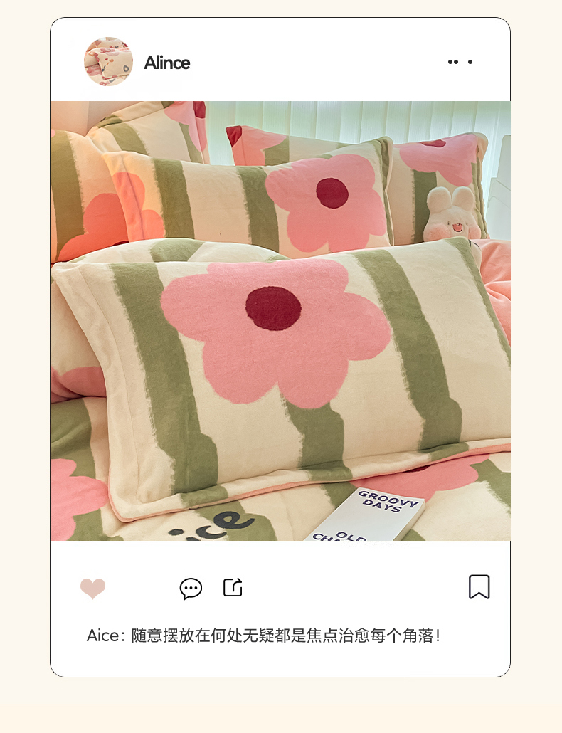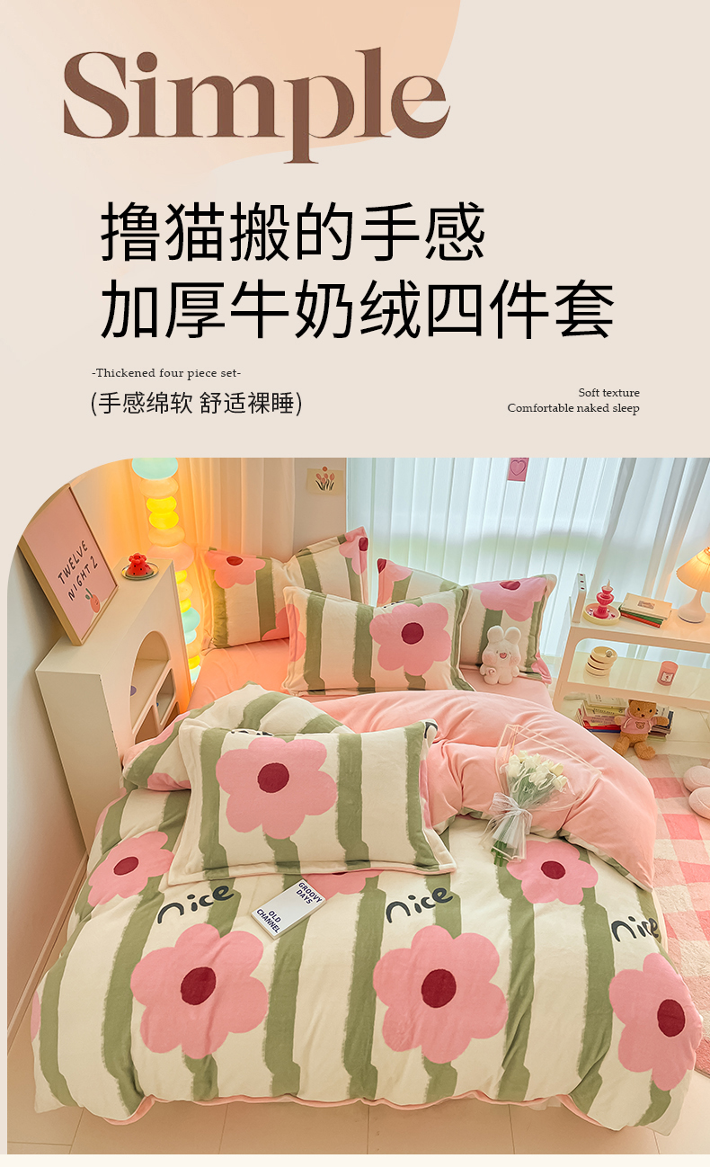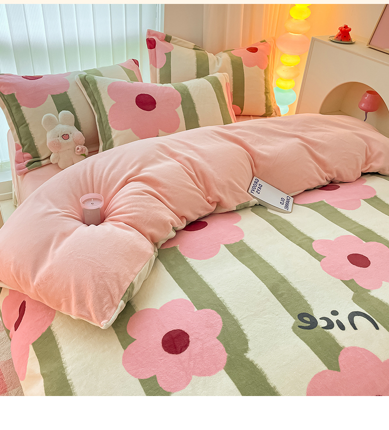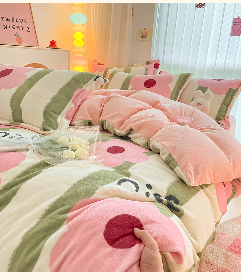 呗旺鹿 2023新款加厚高克重印花牛奶绒四件套直播爆款 花漾