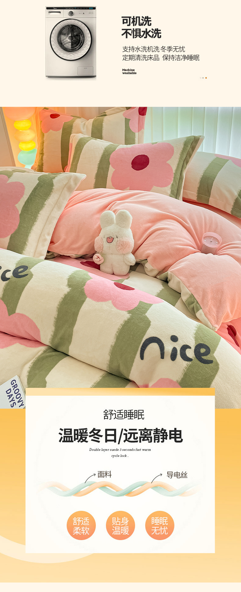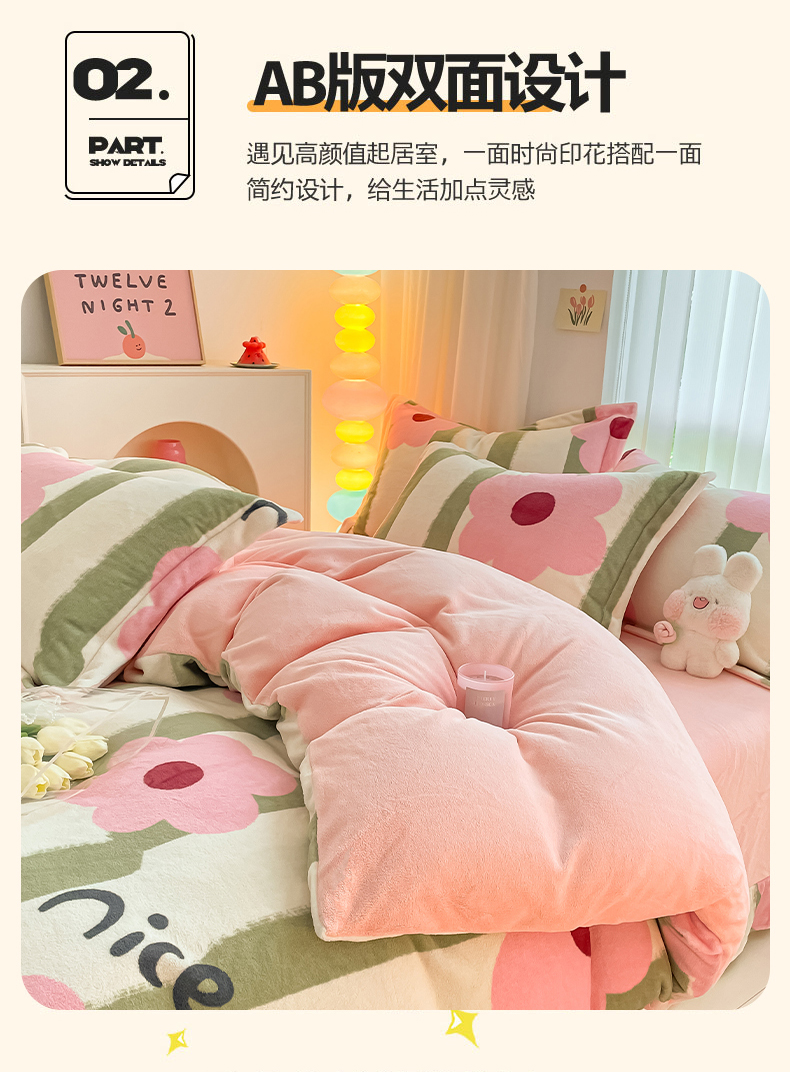 (总)呗旺鹿 2025新款卡通棉+绒牛奶绒棉绒四件套,心意满满,快乐魔法,闹钟麦田