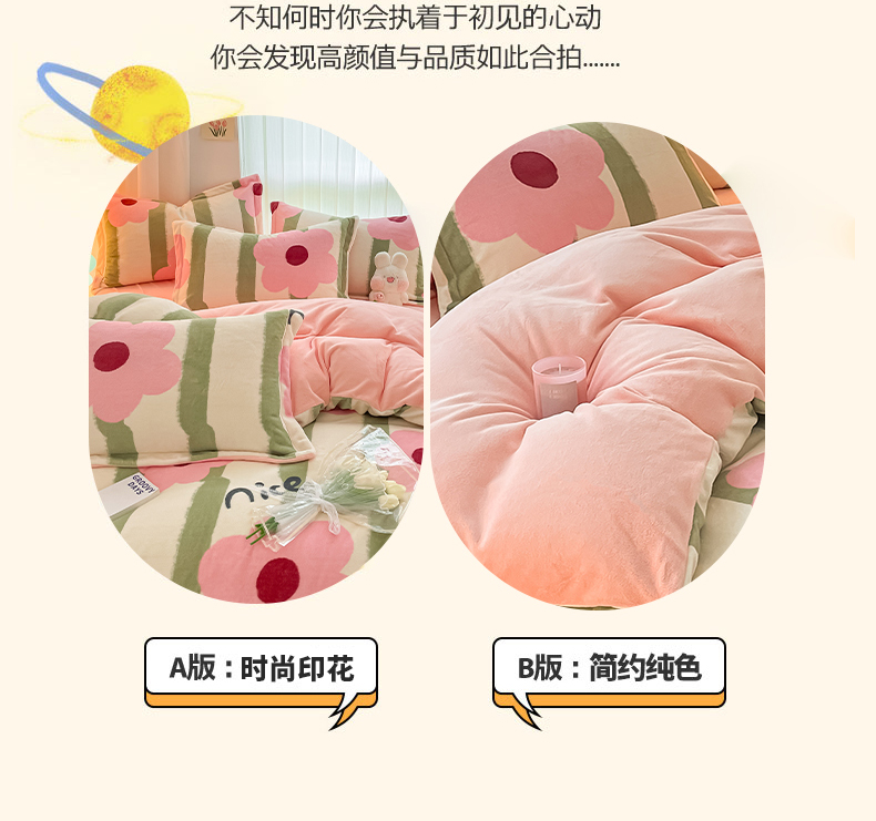 (总)呗旺鹿 2025新款A版全棉B版牛奶绒四件套,冰岛小马,萌星,糖果小马,小狗笔记,费尔岛小熊