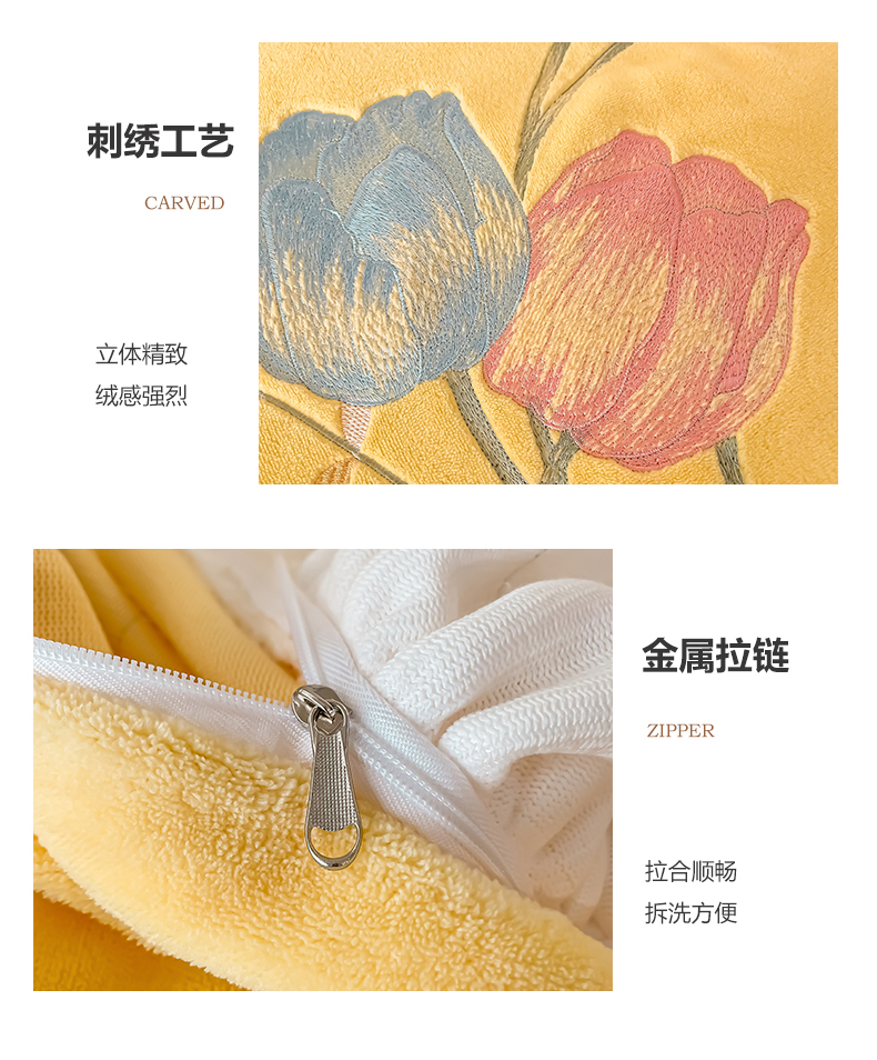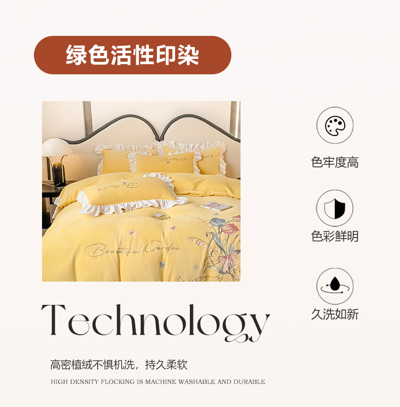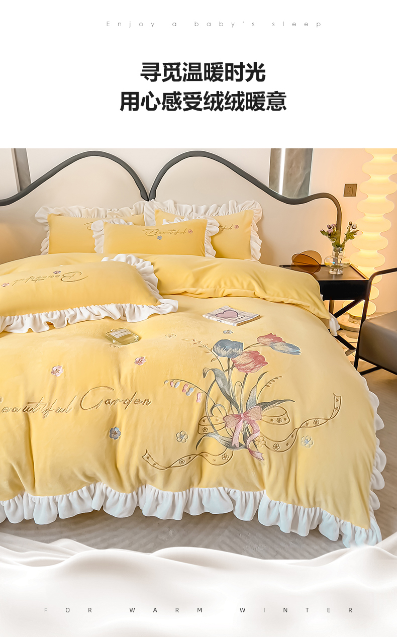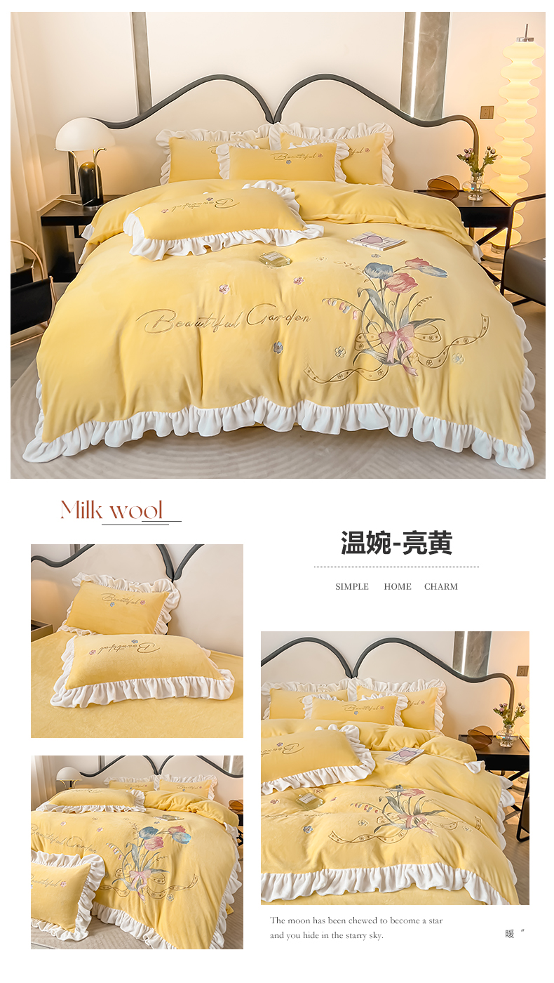 凯美家居 2023新款牛奶绒刺绣四件套 温婉 亮黄