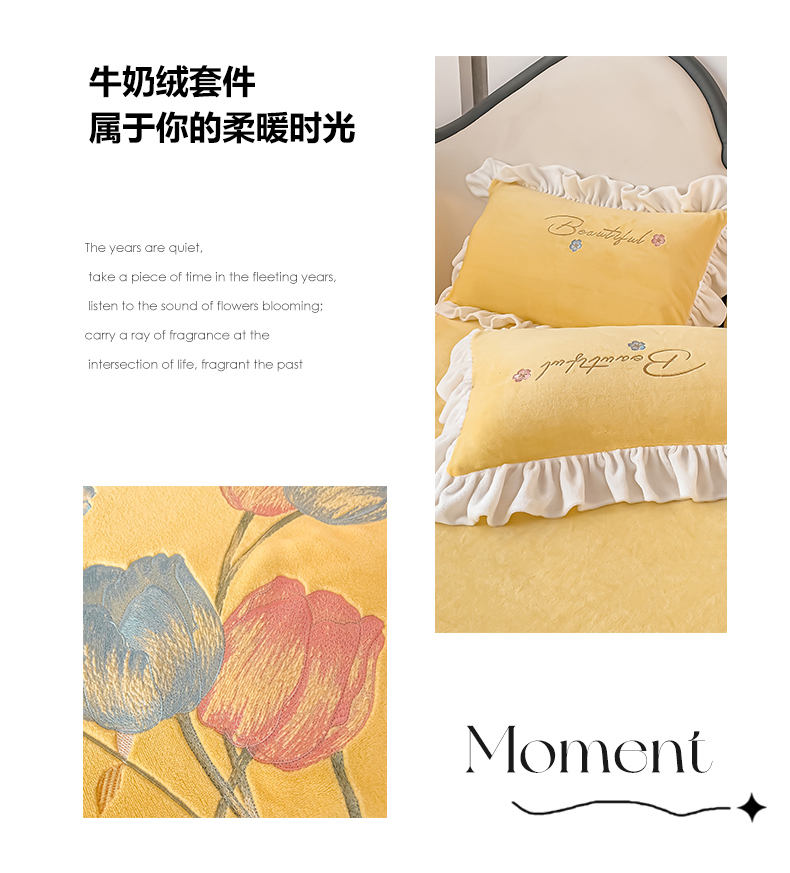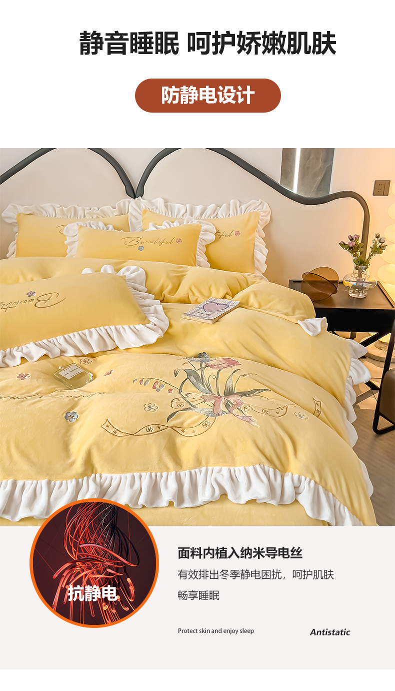 商品名称:凯美家居 2023新款牛奶绒刺绣四件套 温婉 亮黄