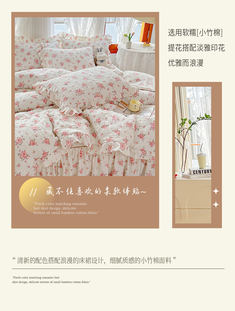 当前位置: 91家纺网 > 商品网购 > 床品套件 > 四件套 > 提花四件套 > 恋尚 2023新款小竹棉提花床笠式床裙夹棉四件套 薇薇晴朵