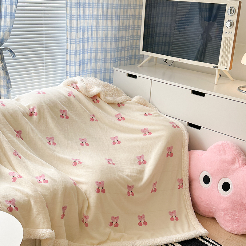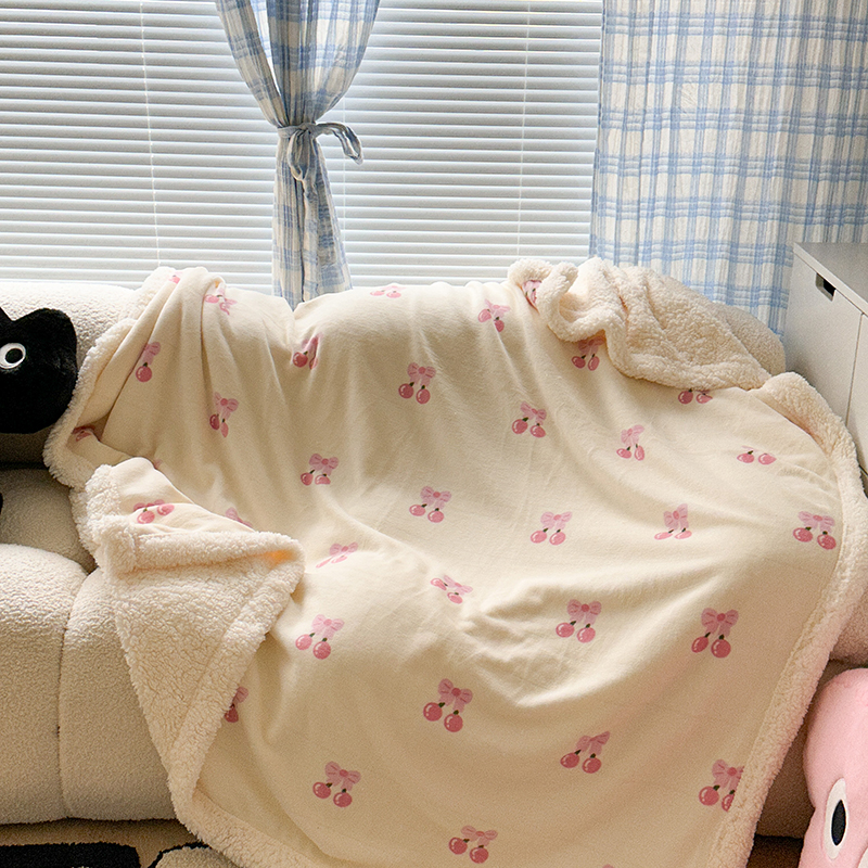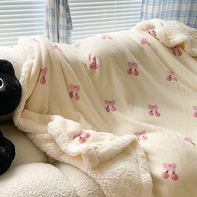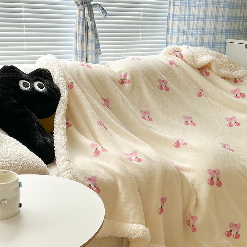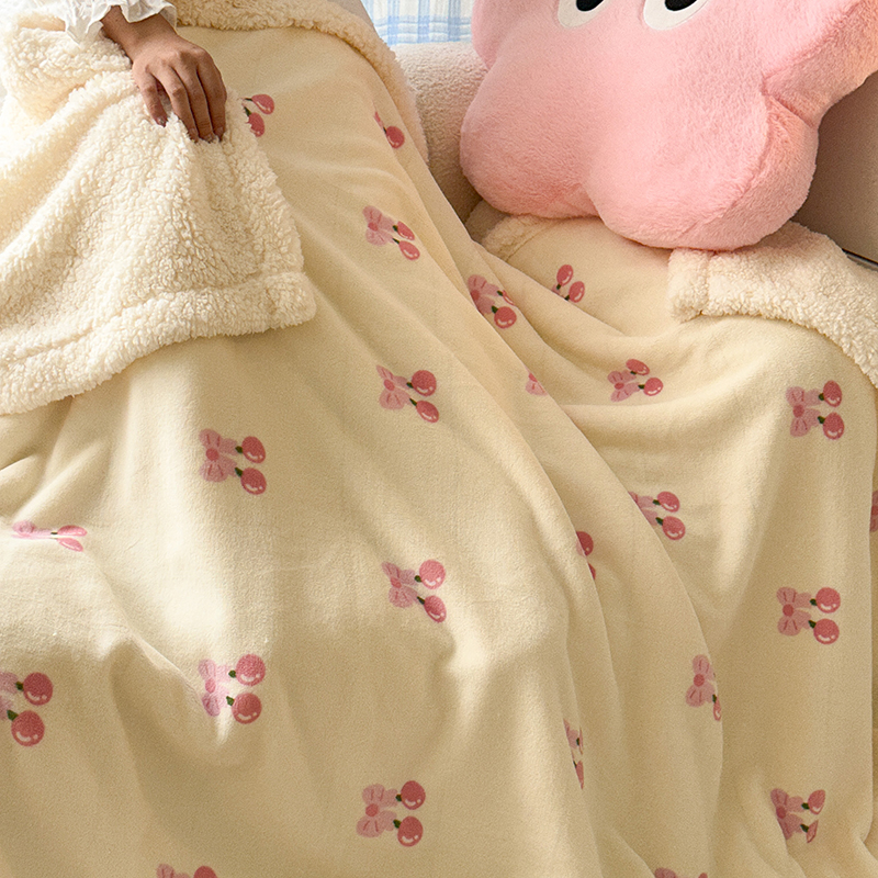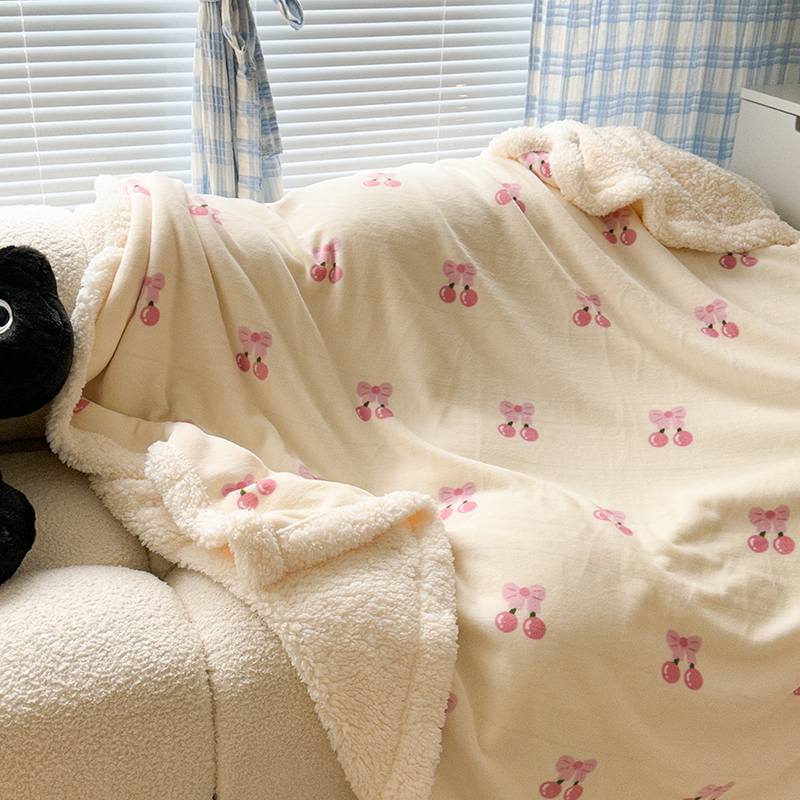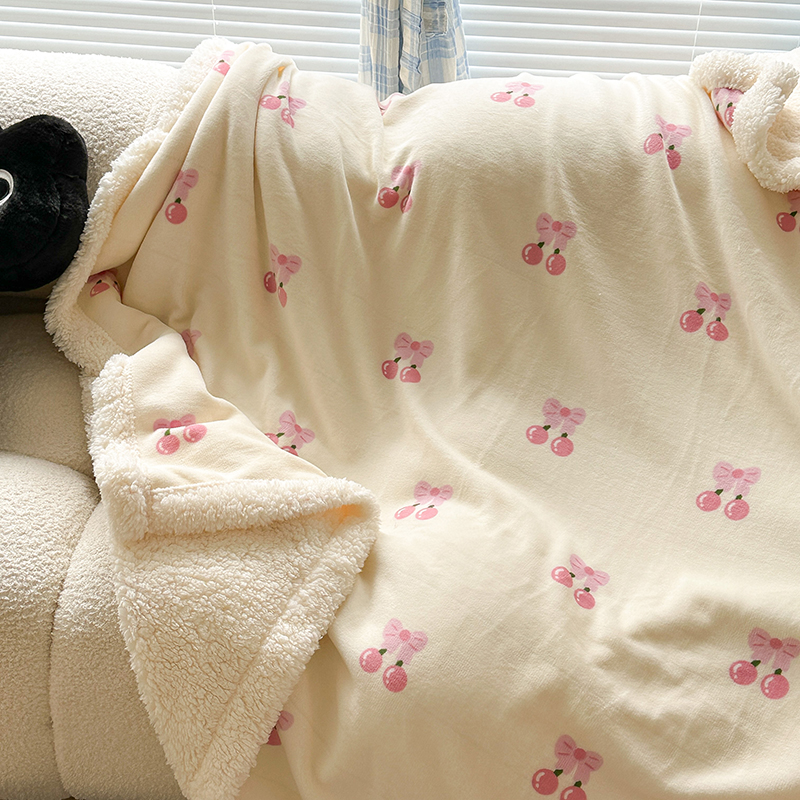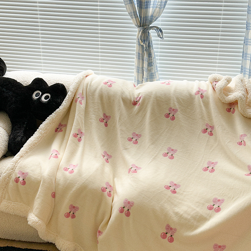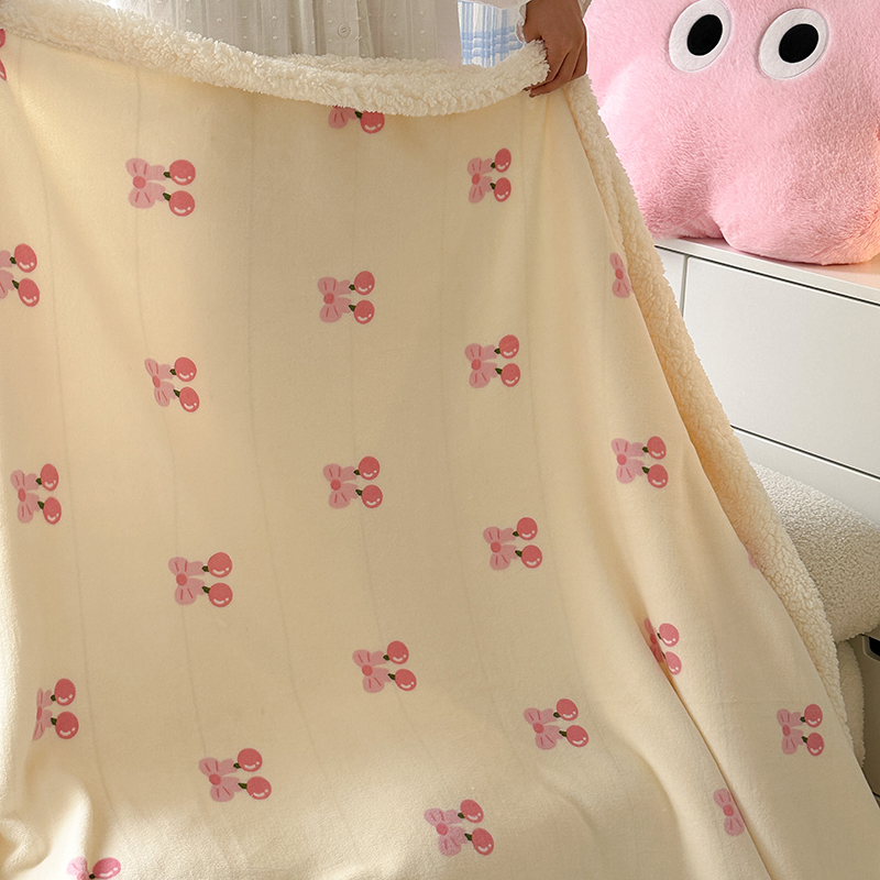 昔可家纺 2023新款ins风牛奶绒羊羔绒印花毛毯(风格二) 一口樱桃