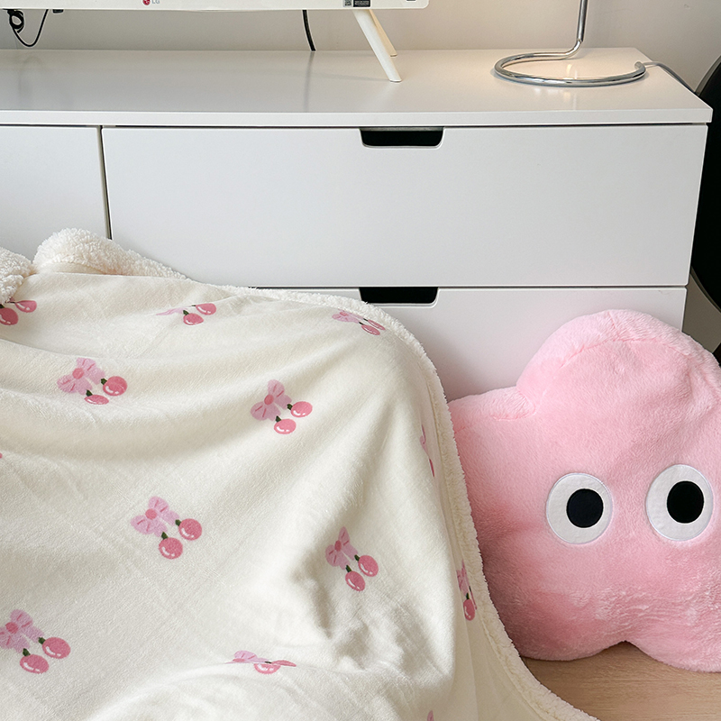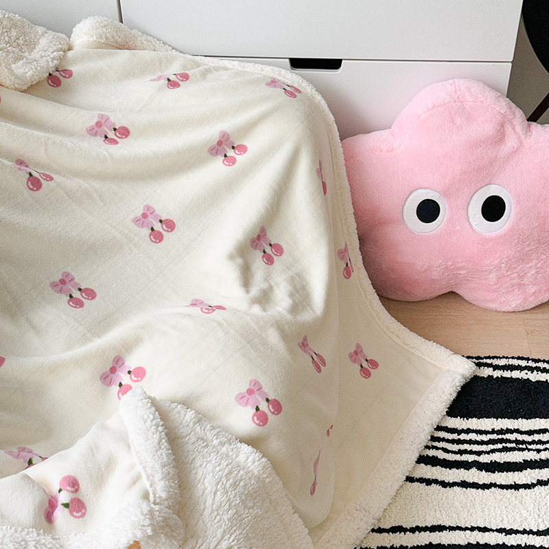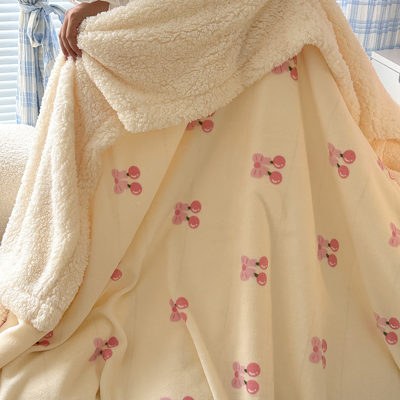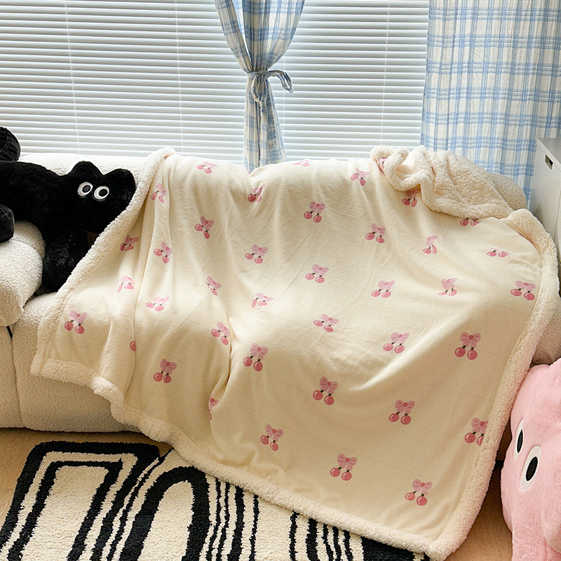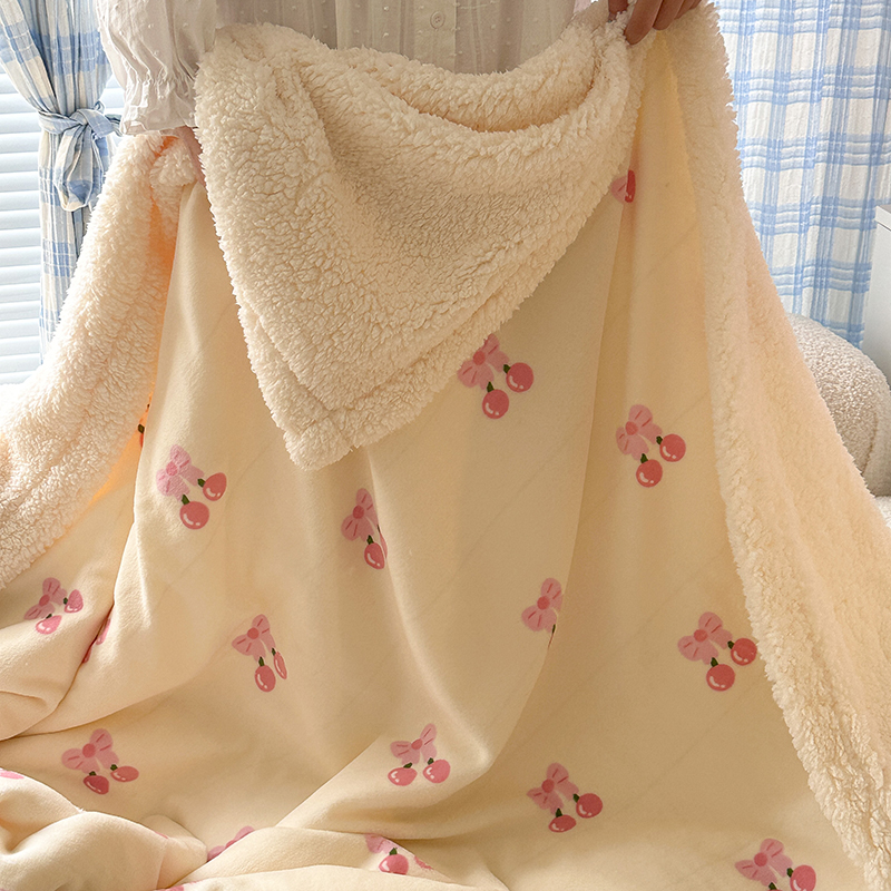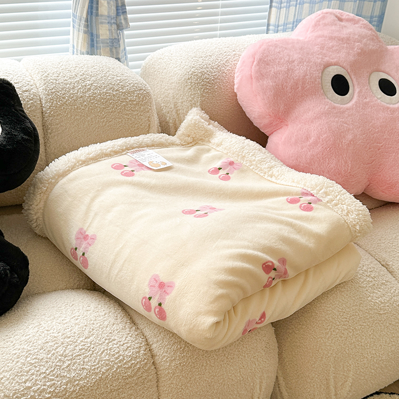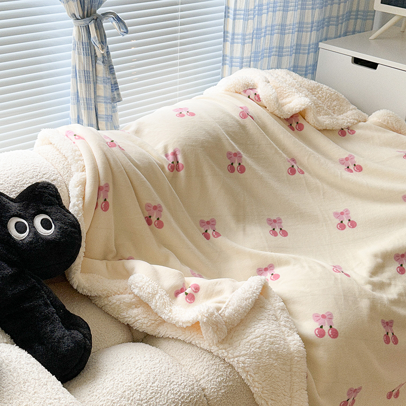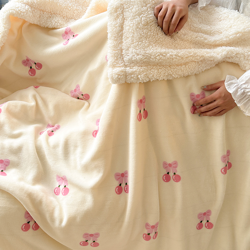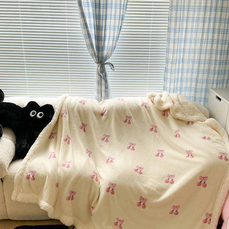 昔可家纺 2023新款ins风牛奶绒羊羔绒印花毛毯(风格二) 一口樱桃