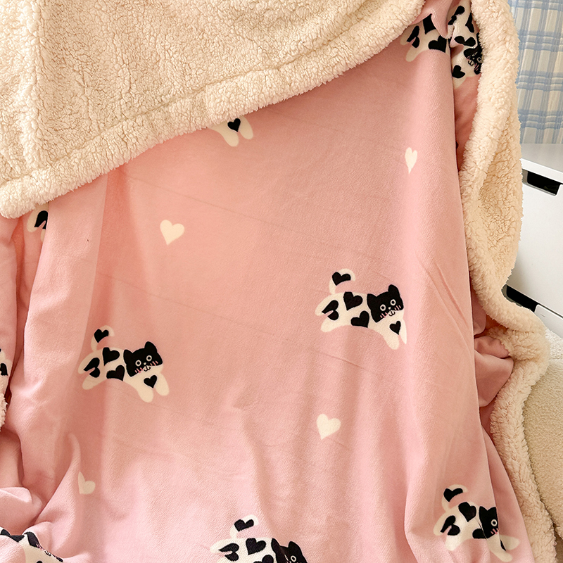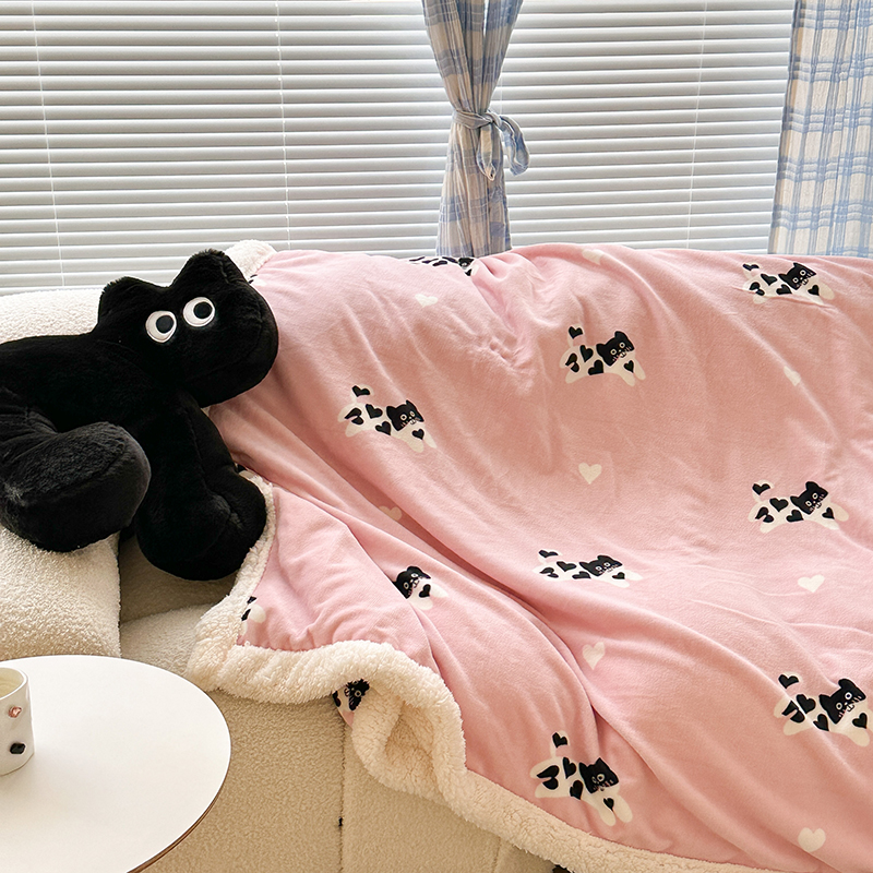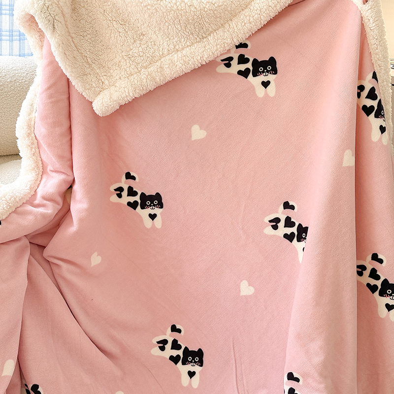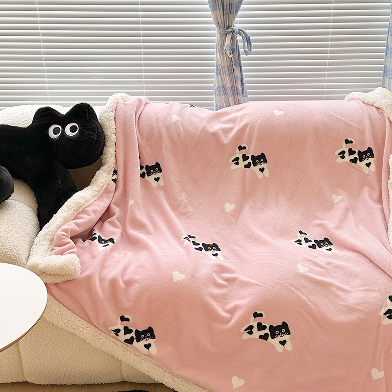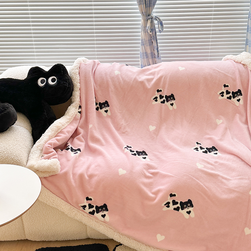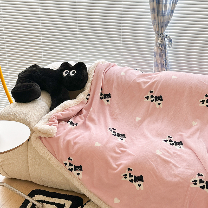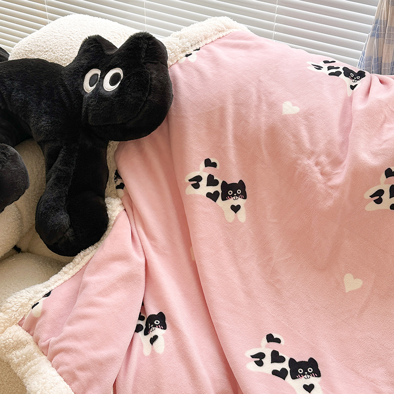 昔可家纺 2023新款ins风牛奶绒羊羔绒印花毛毯(风格二) 爱心小黑猫