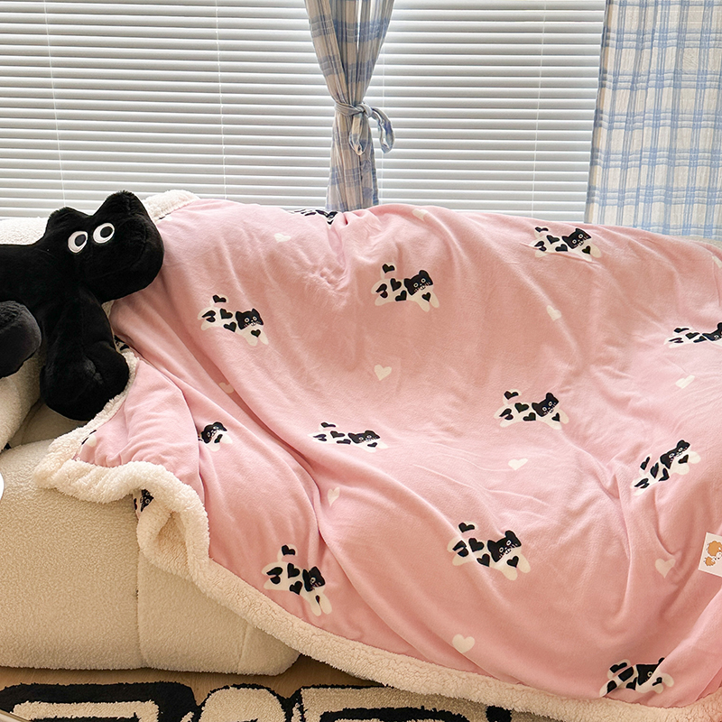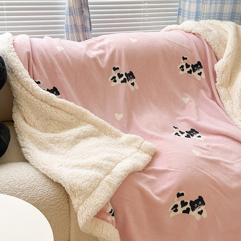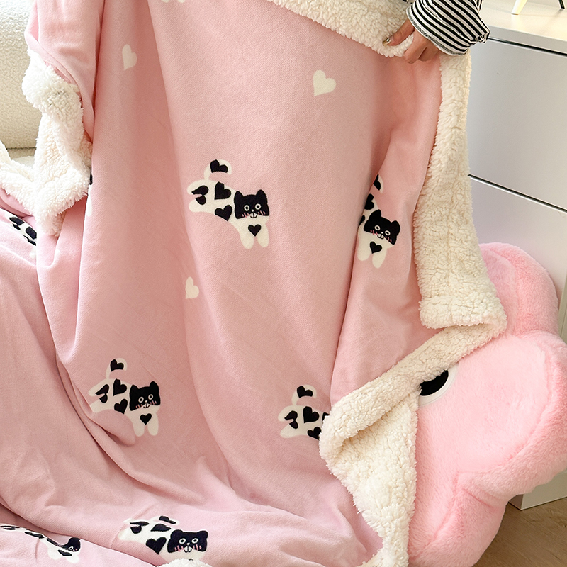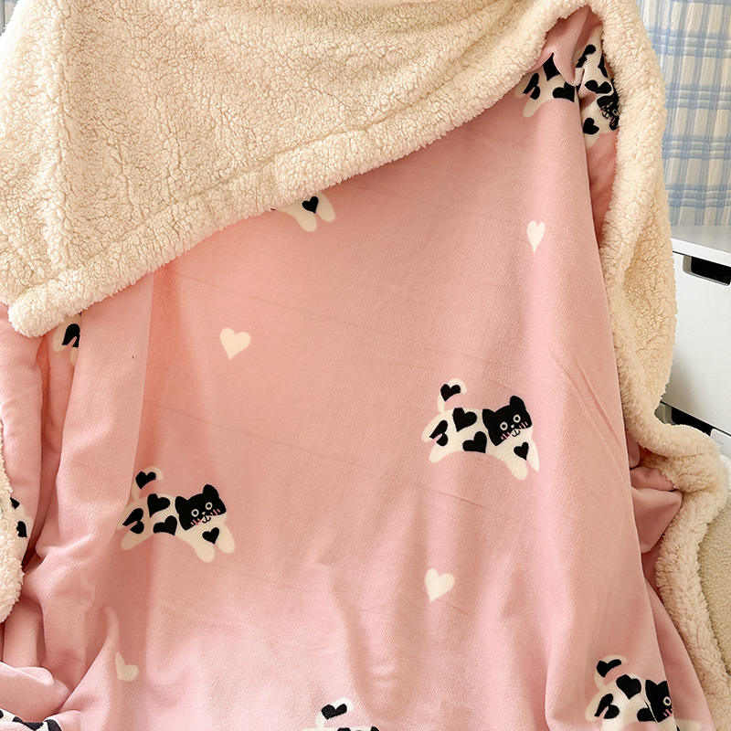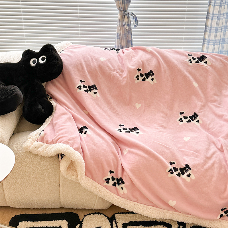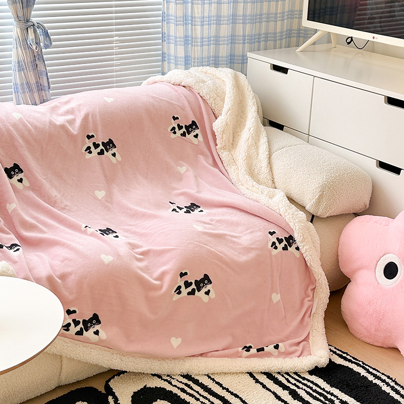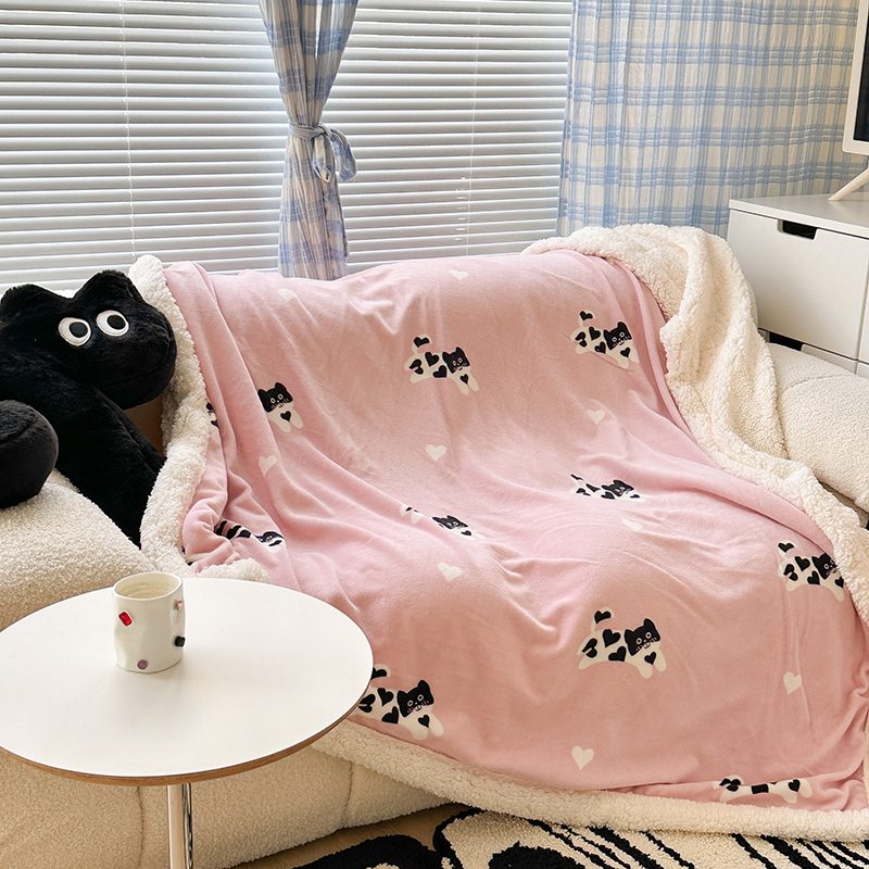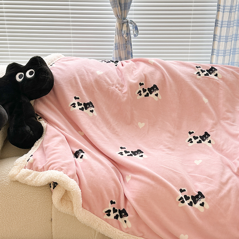 昔可家纺 2023新款ins风牛奶绒羊羔绒印花毛毯(风格二) 爱心小黑猫