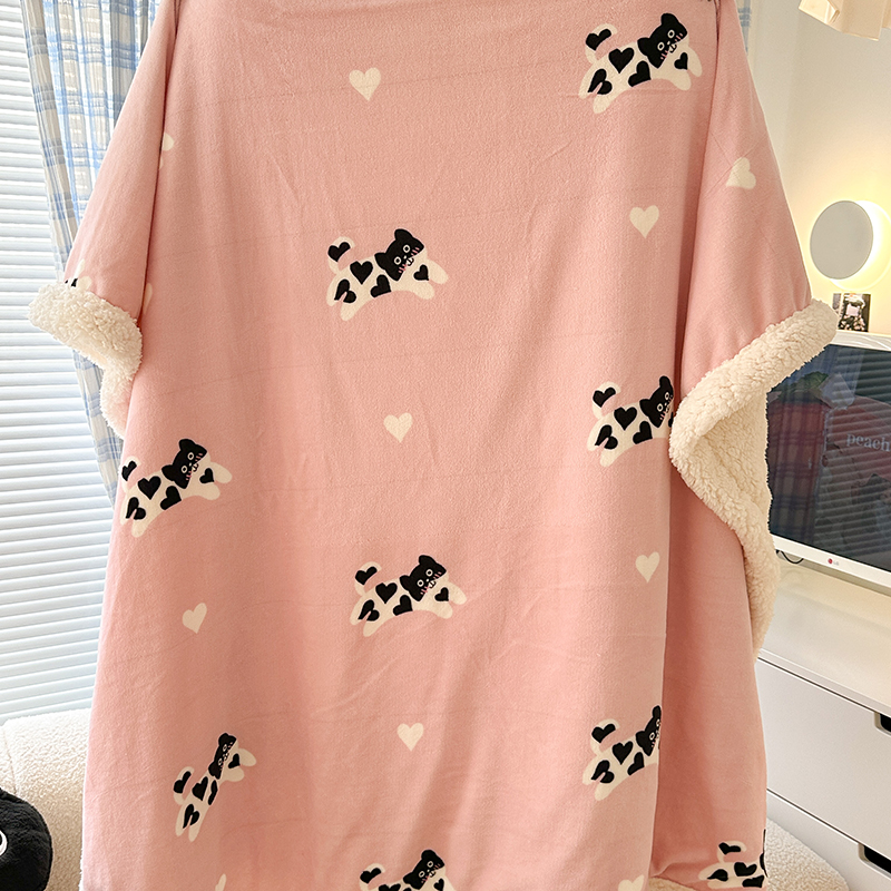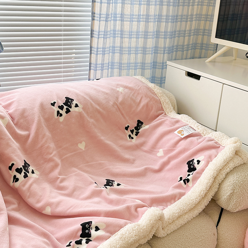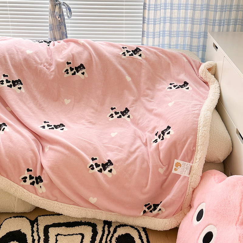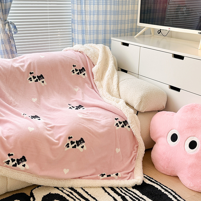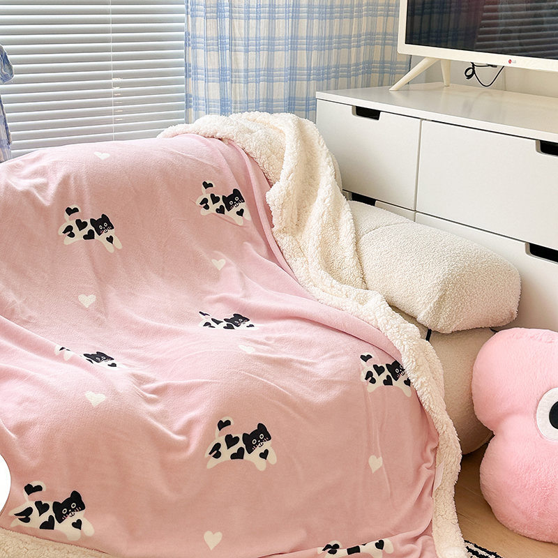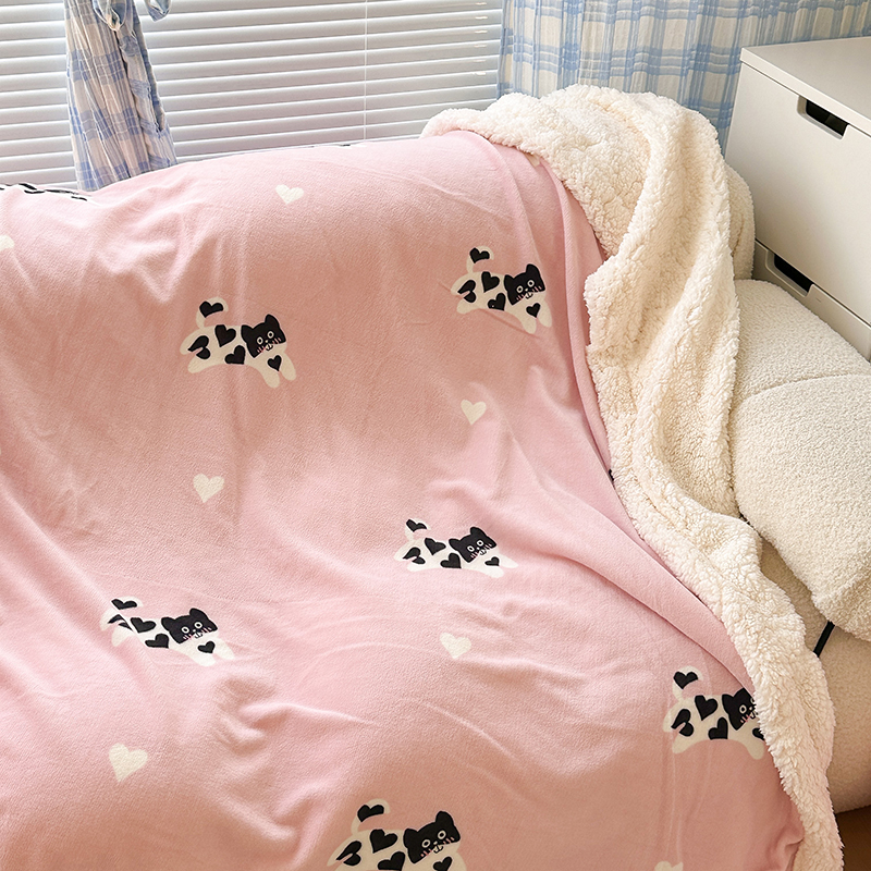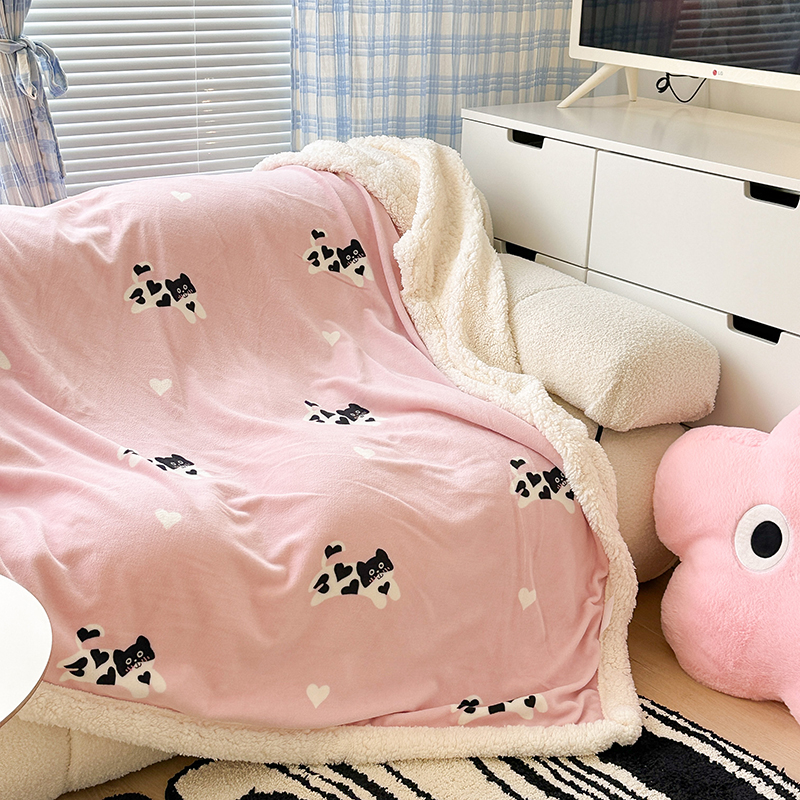 昔可家纺 2023新款ins风牛奶绒羊羔绒印花毛毯(风格二) 爱心小黑猫