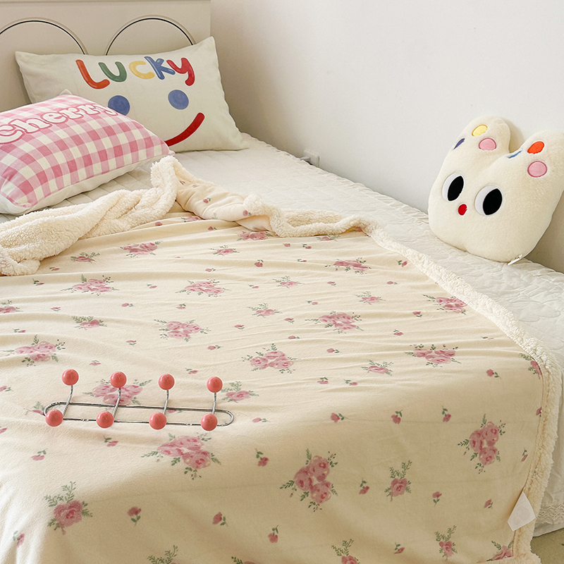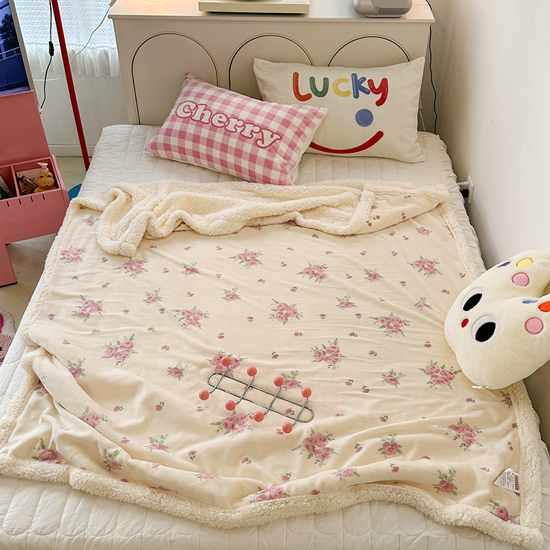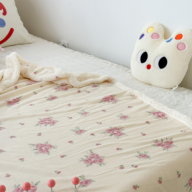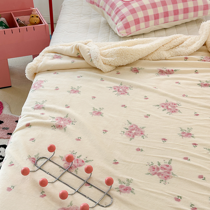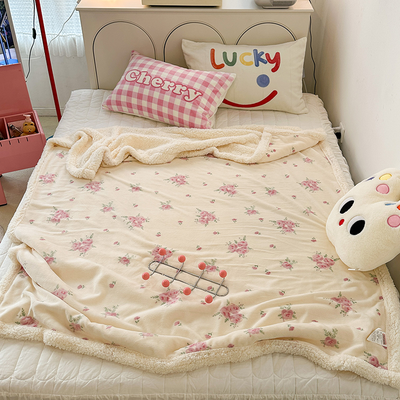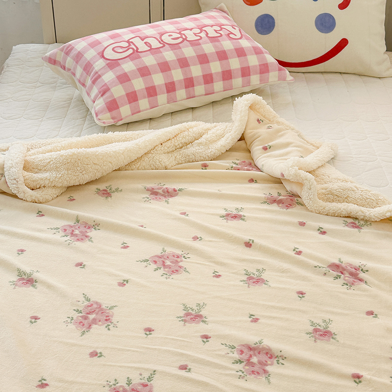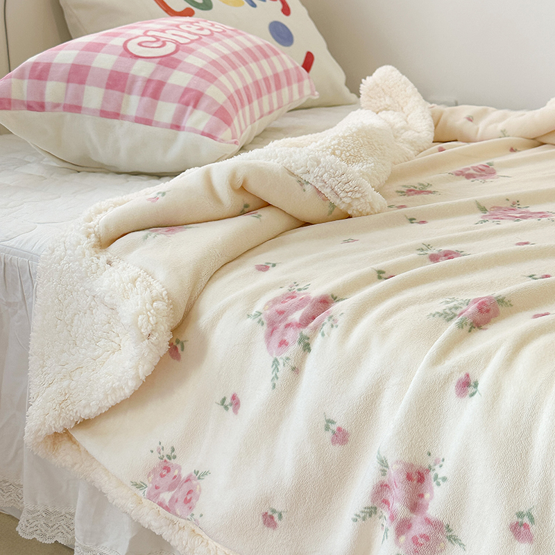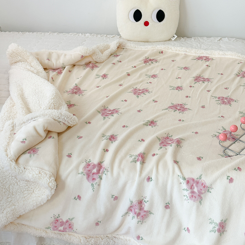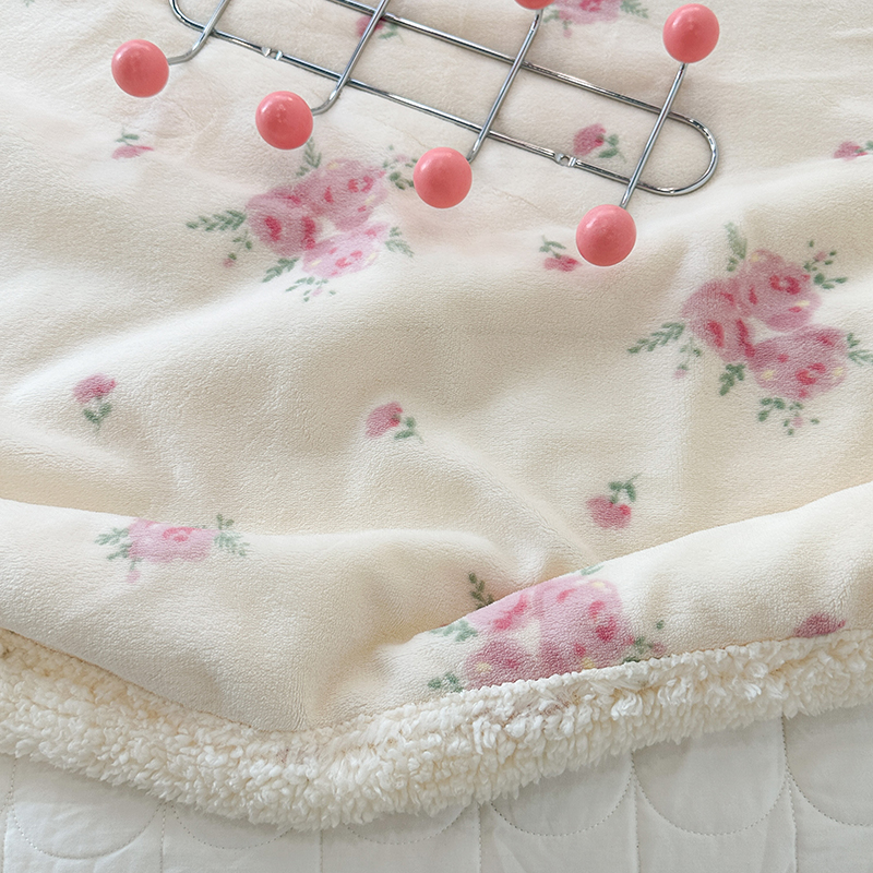 昔可家纺 2023新款ins风牛奶绒羊羔绒印花毛毯(风格一) 午后茶花