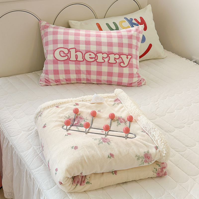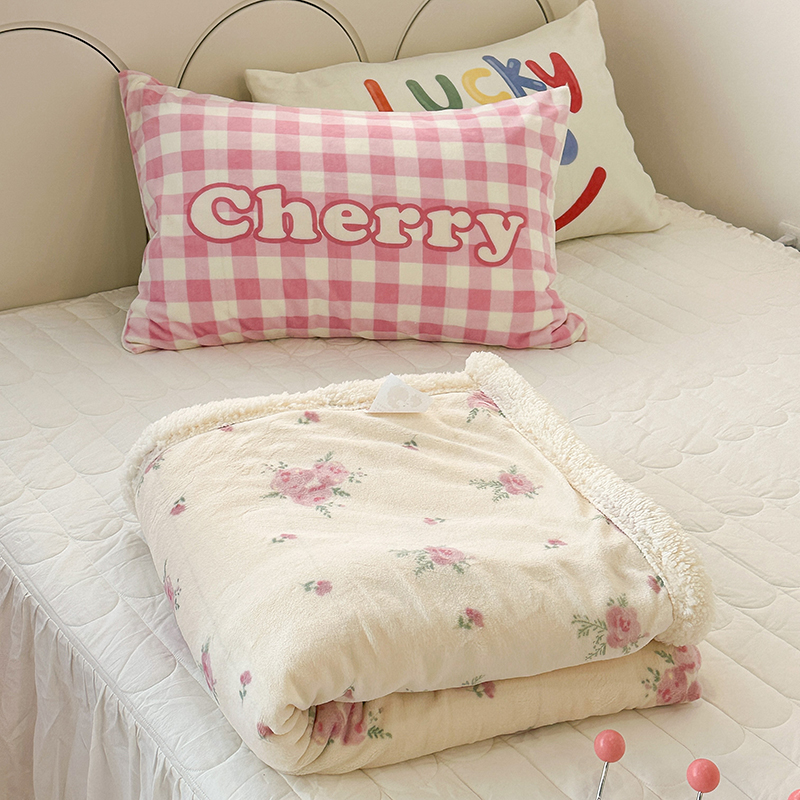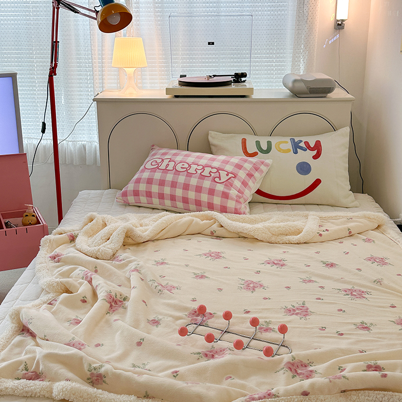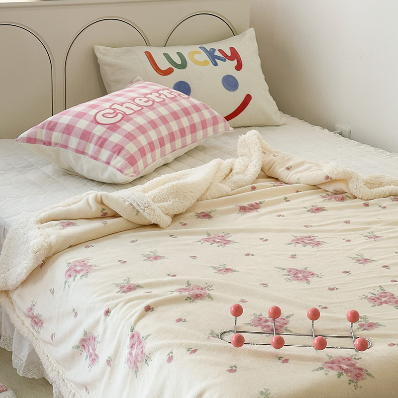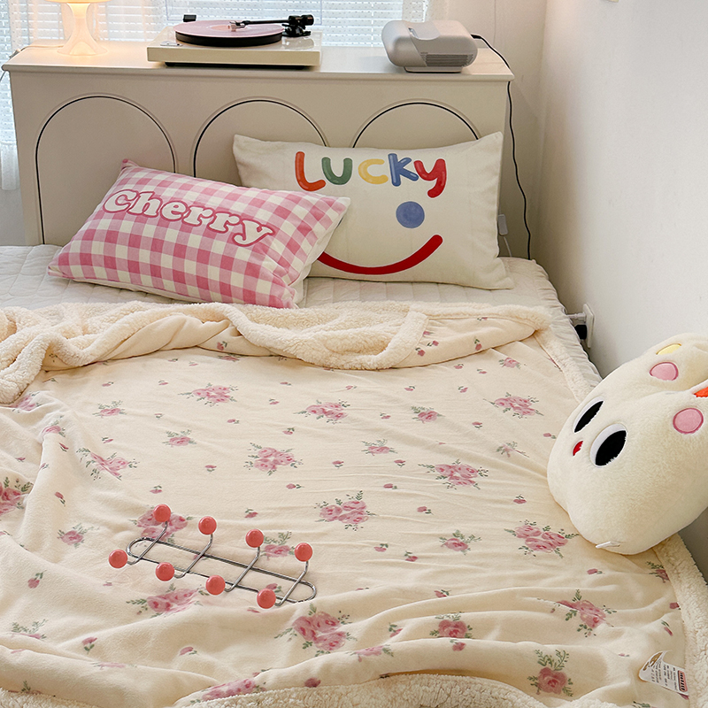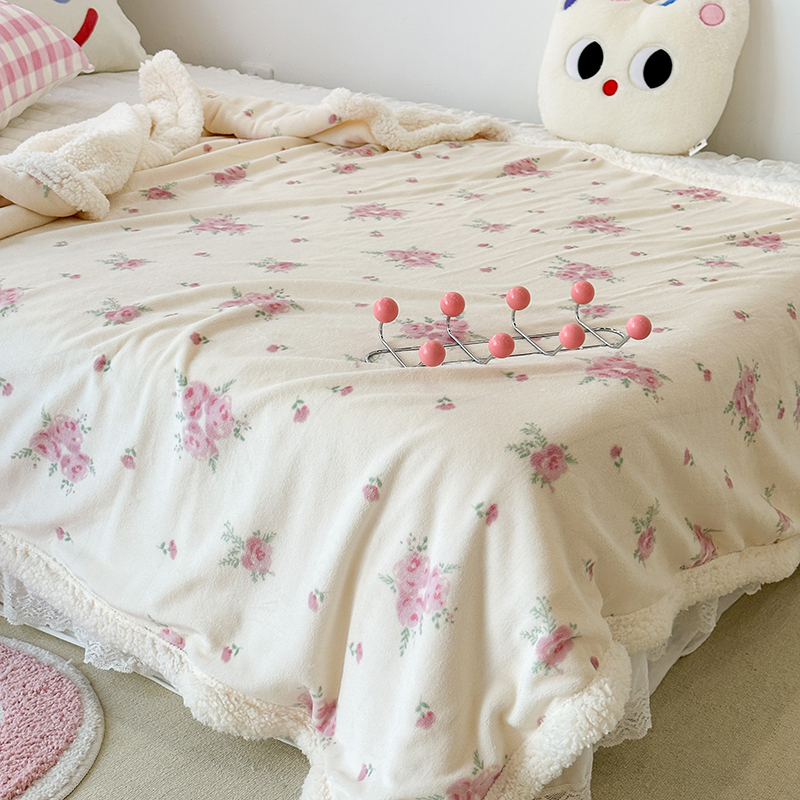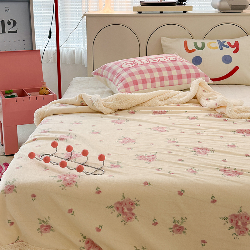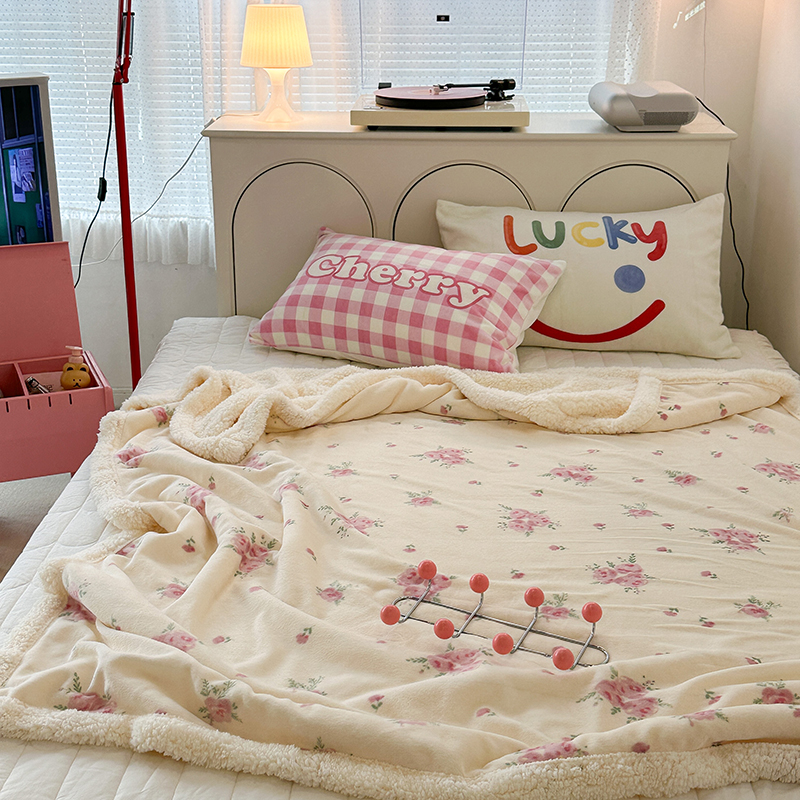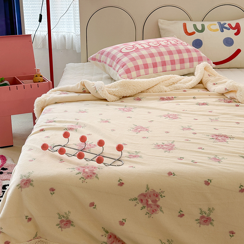 昔可家纺 2023新款ins风牛奶绒羊羔绒印花毛毯(风格一) 午后茶花