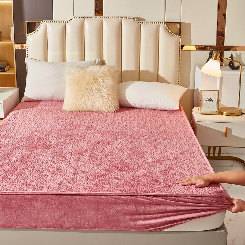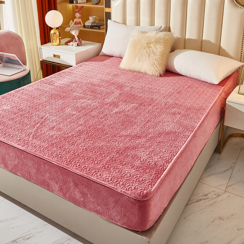 商品名称:雅眠居 2023秋冬新款纯色牛奶绒夹棉床笠保暖床垫保护垫 皮红