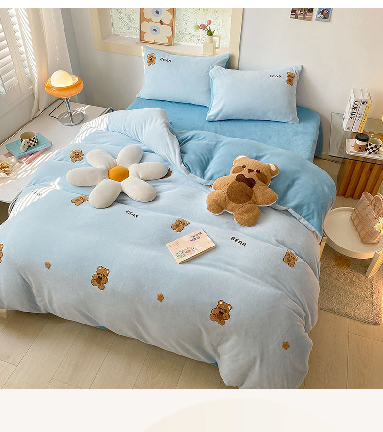寐居家纺 2023毛巾绣牛奶绒四件套 萌萌熊-蓝