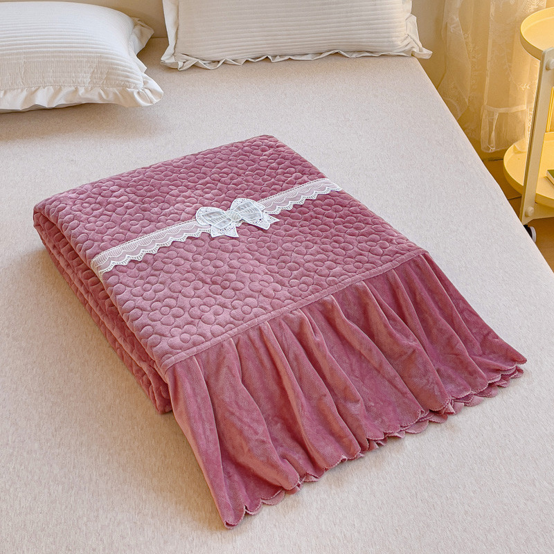 2023直播爆款纯色牛奶绒床盖床裙款蕾丝边素色婴儿绒床盖 蝴蝶结-胭脂红