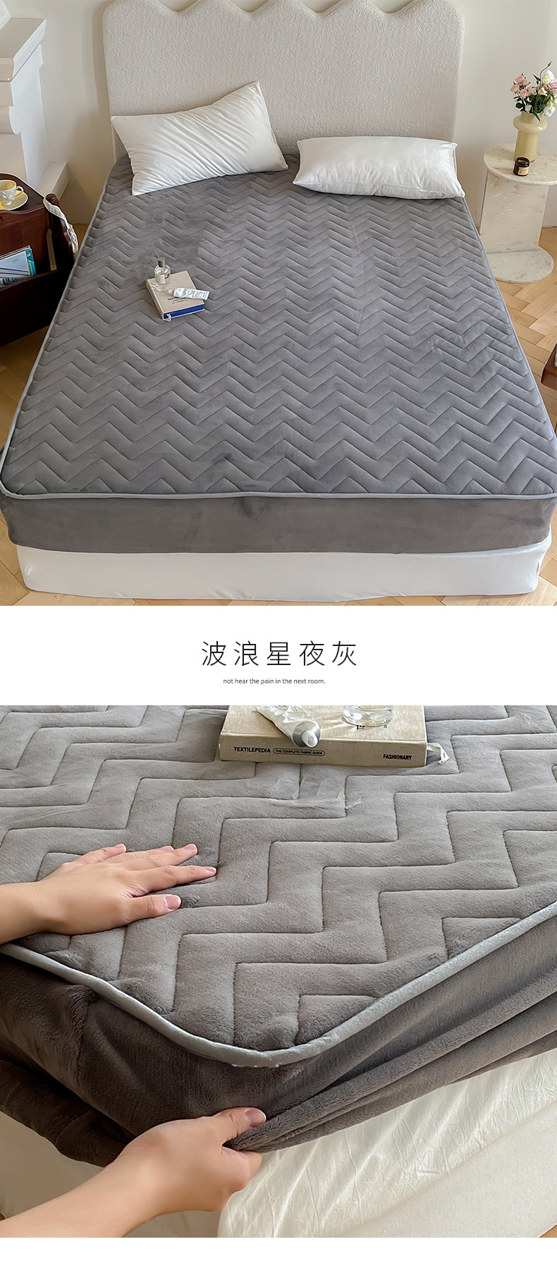 商品名称:三味舒屋 2024新款牛奶绒夹棉床笠 波浪星夜灰