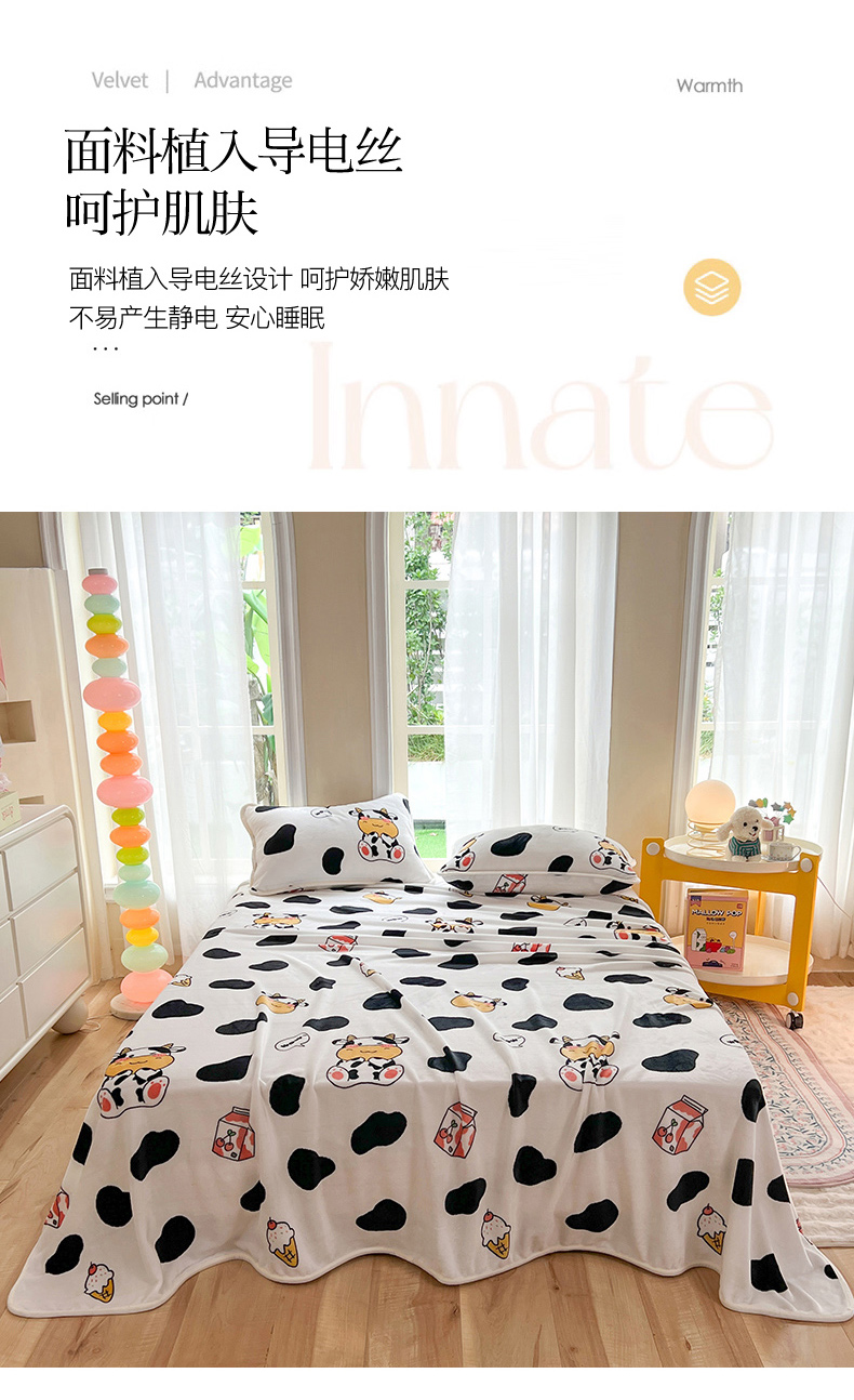 • 91家纺网 家纺一手货源 找家纺 眠博士 2023新款包边印花床单场景一 床单-奶牛宝贝