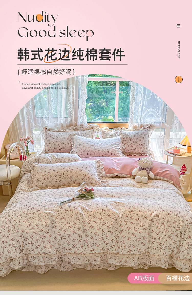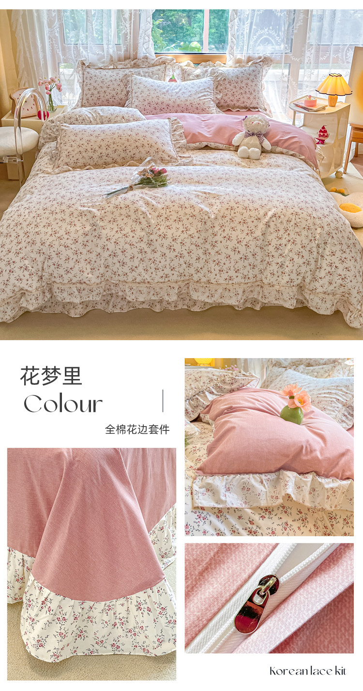 艾唯希家纺 2024新款全棉韩式花边四件套纯棉公主风田园系列 花梦里