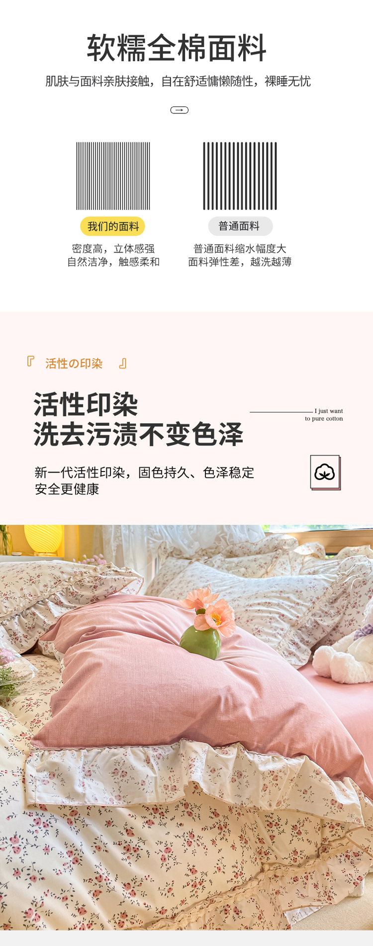 商品名称:艾唯希家纺 2024新款全棉韩式花边四件套纯棉公主风田园系列 花梦里