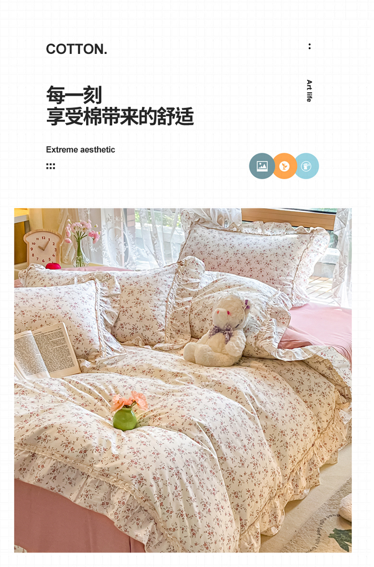 (总)艾唯希2025新款全棉小香风工艺四件套纯棉小花边碎花被套韩式公主风,初朵,春漾,漫丁蔷薇,觅秋,密玲花语,慕归十里,小青藤-米,小樱-咖,雅集,雅蔓花语,樱花,悠然雅居-粉