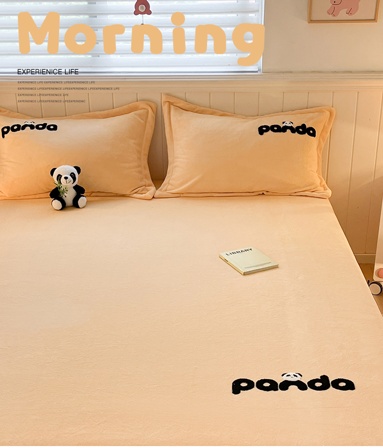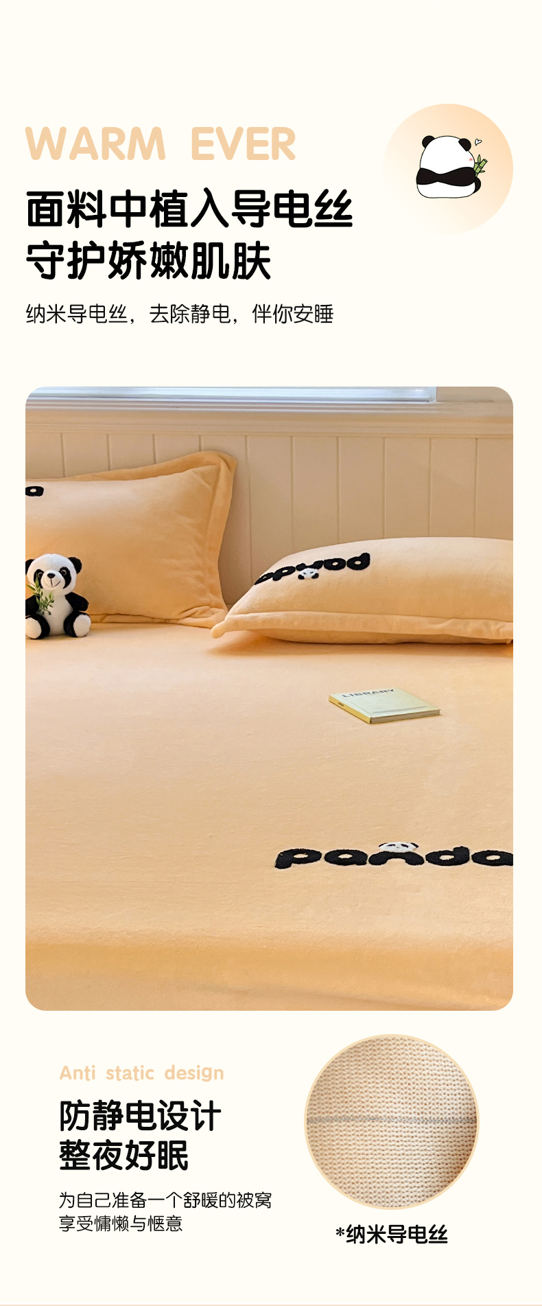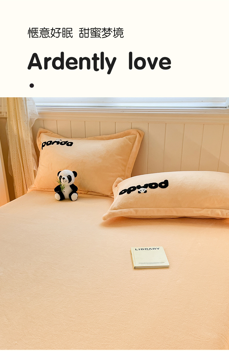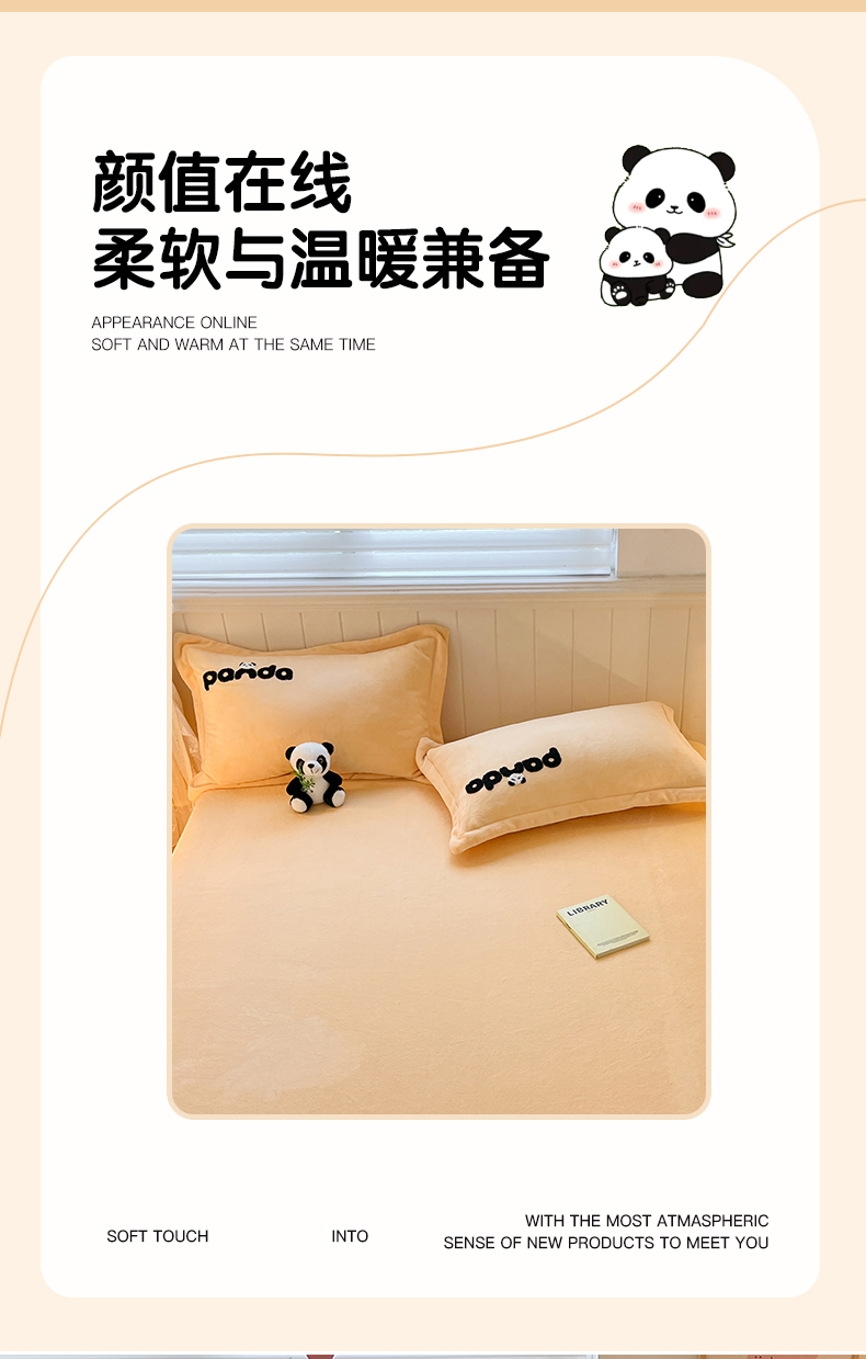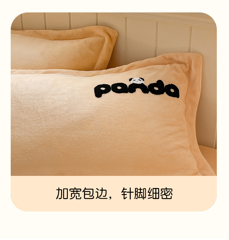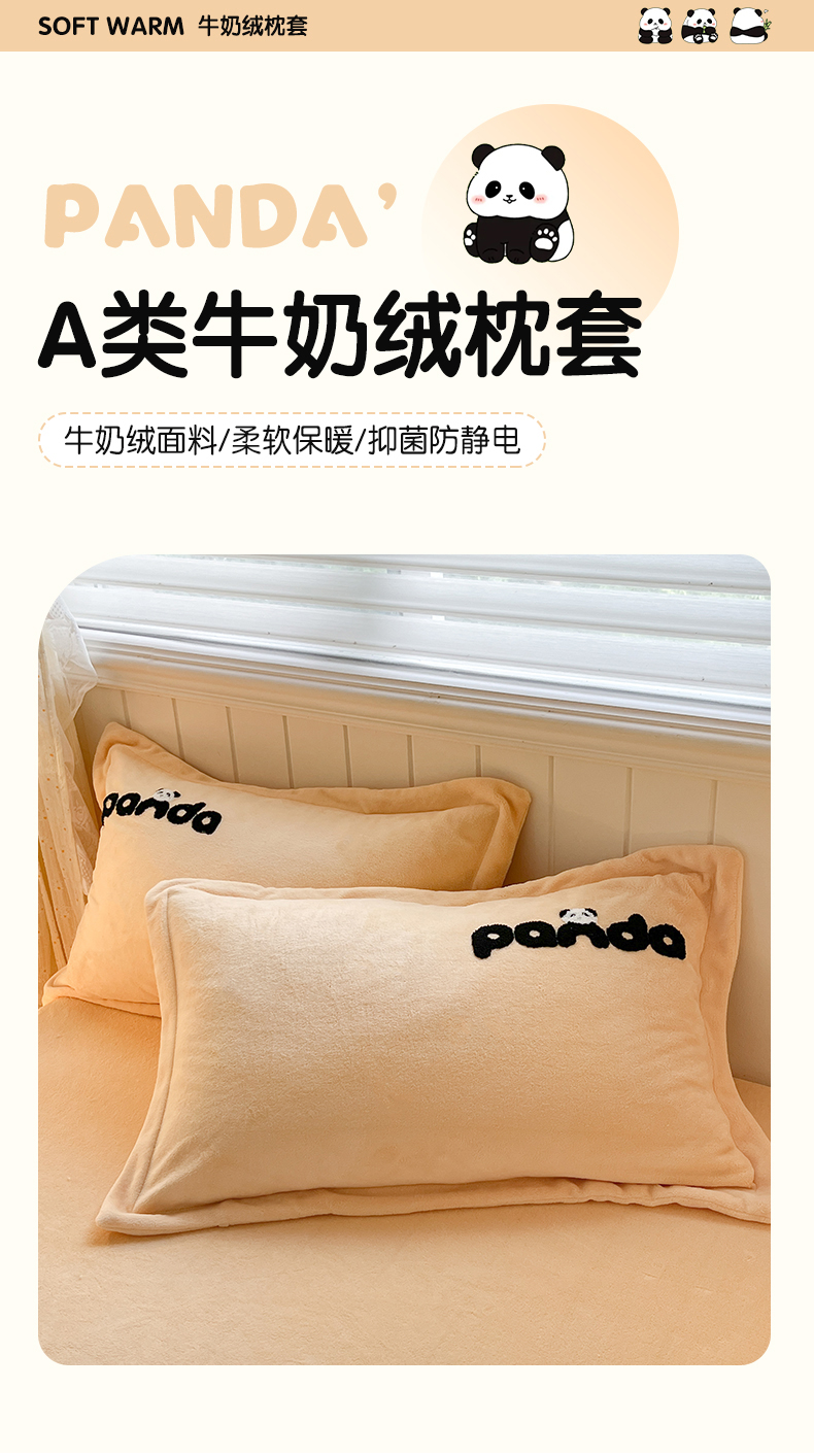 丽美人家纺 2023新款熊猫牛奶绒毛巾绣单枕套 熊猫-小香咖