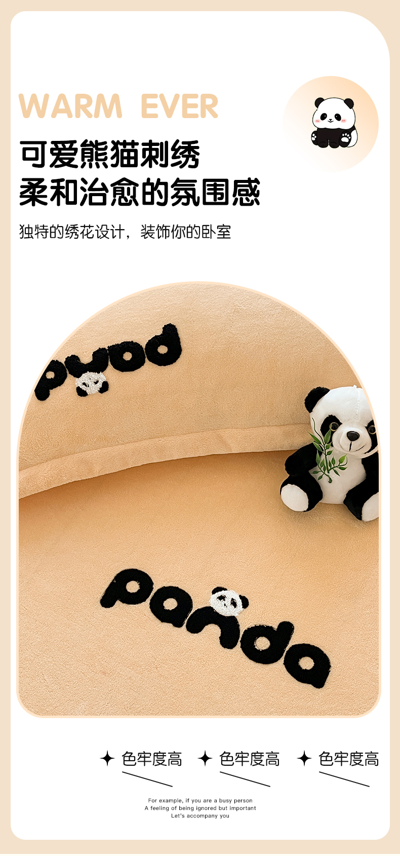 商品名称:丽美人家纺 2023新款熊猫牛奶绒毛巾绣单枕套 熊猫-小香咖