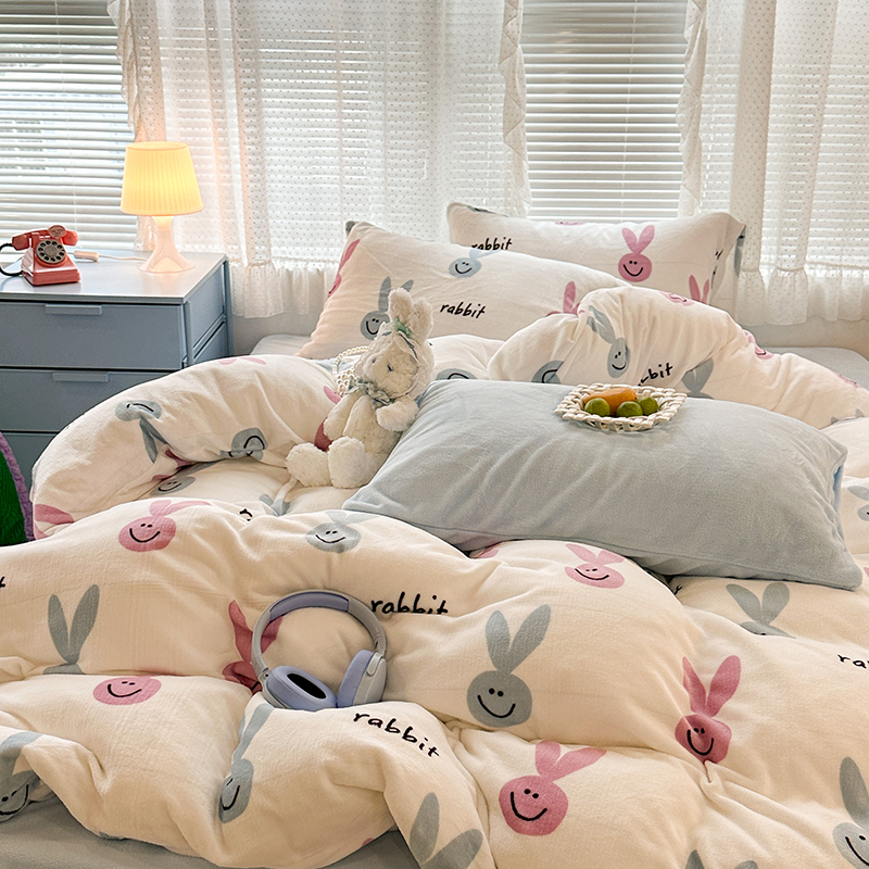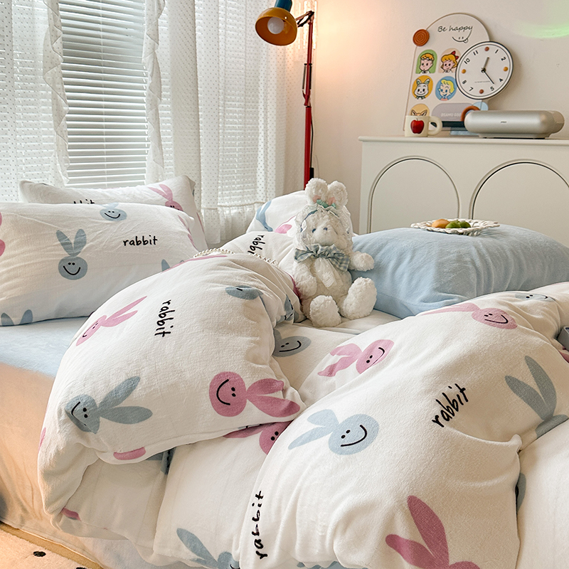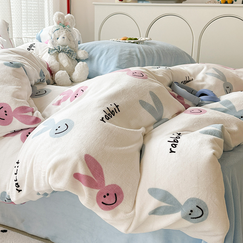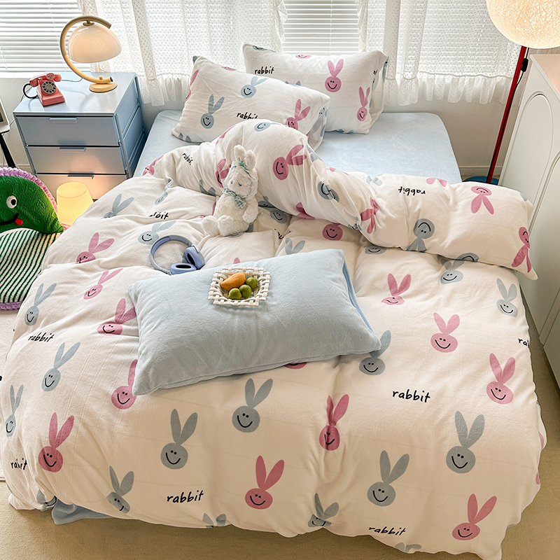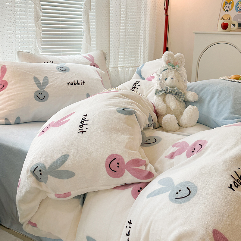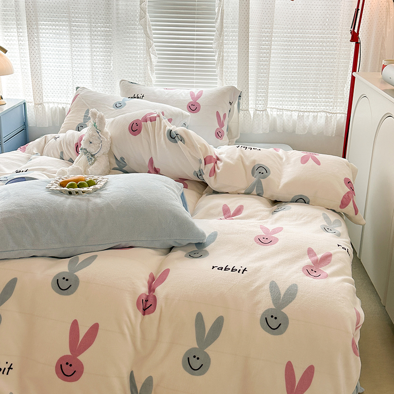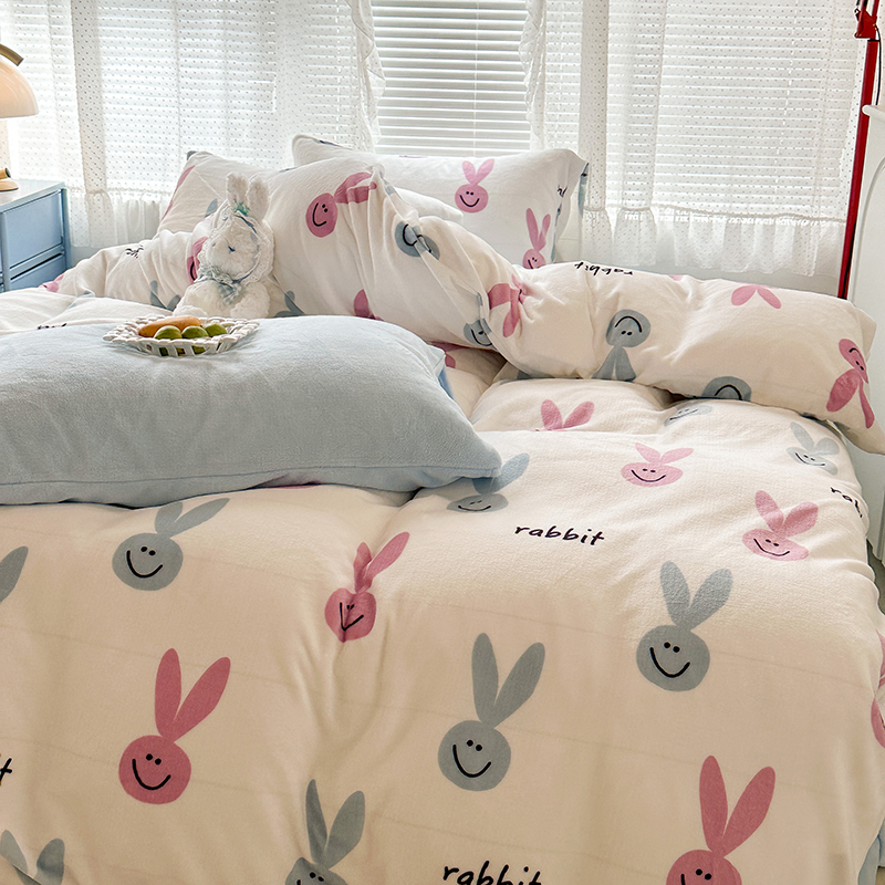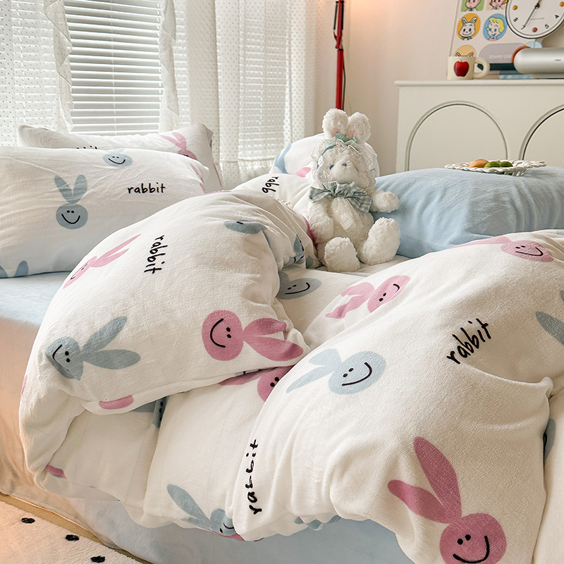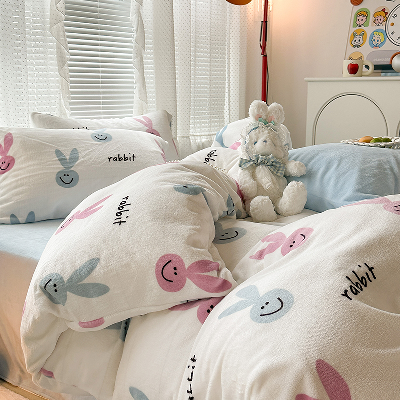 昔可家纺 2023新款高克重印花牛奶绒卡通系列四件套 长耳朵兔兔