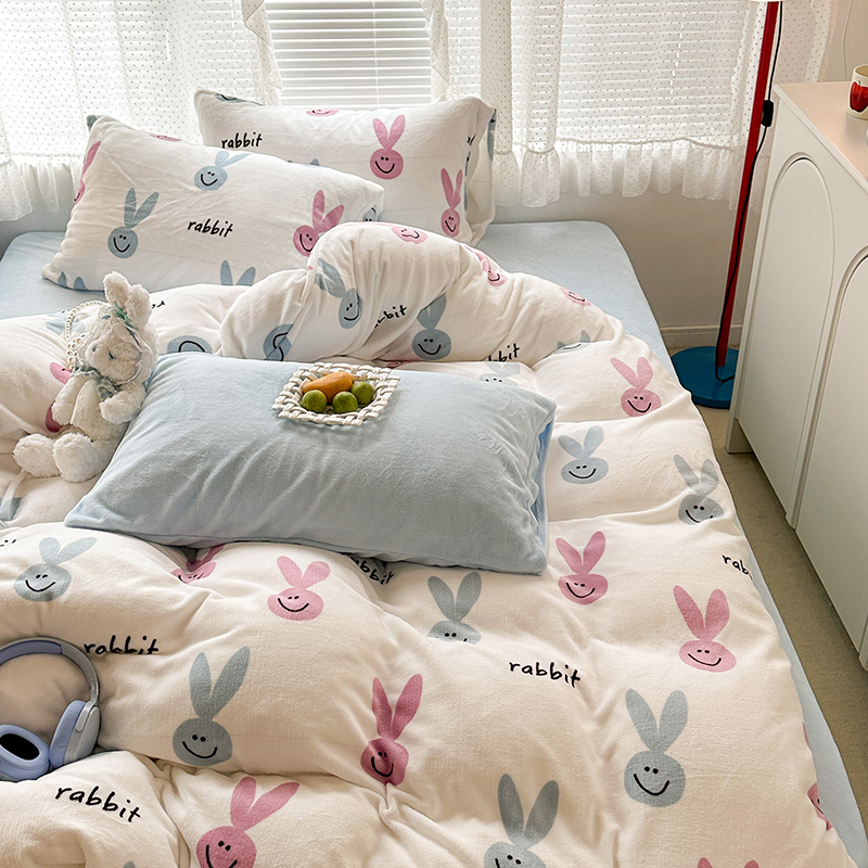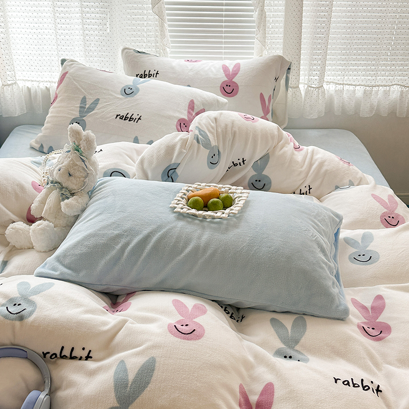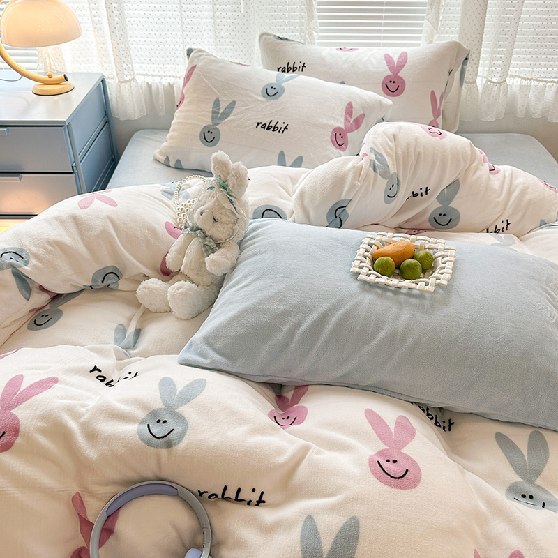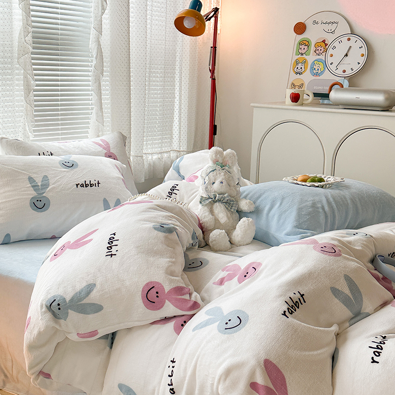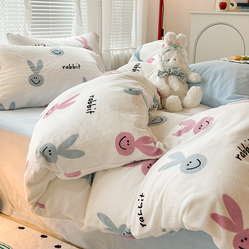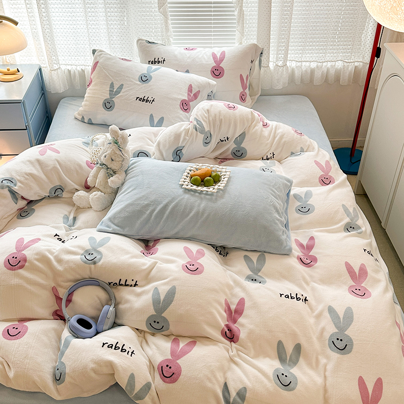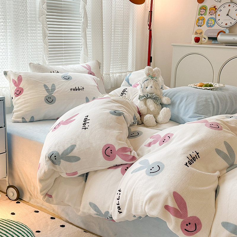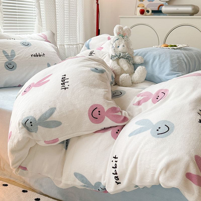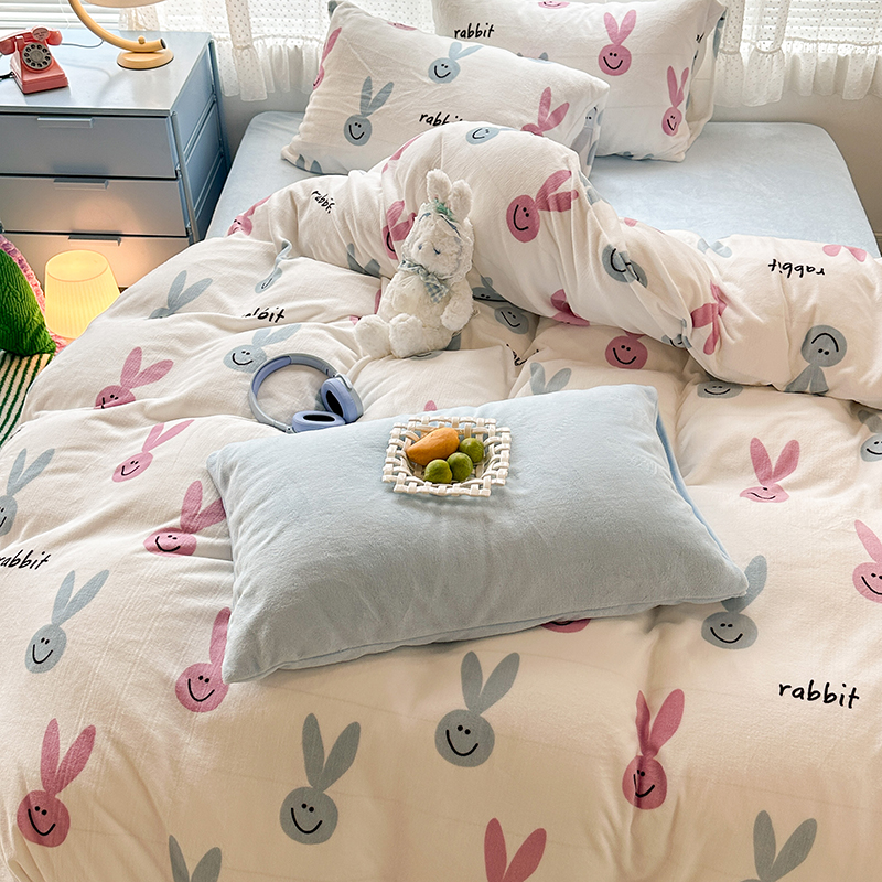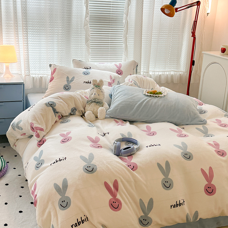 昔可家纺 2023新款高克重印花牛奶绒卡通系列四件套 长耳朵兔兔