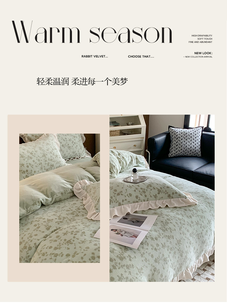 (总)潘朵拉 2023年新款豆豆绒花边牛奶绒四件套,仙芽,兰溪,半眠,向晚,小奶兔,樱桃丸子,粉萝,紫烟,花城,薄荷味,青雅