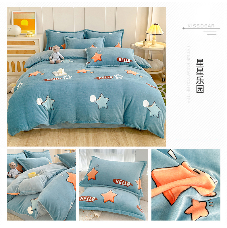 当前位置: 91家纺网 > 商品网购 > 床品套件 > 四件套 > 牛奶绒四件套 > 家贝爱 2023新款加厚牛奶绒四件套 星星乐园