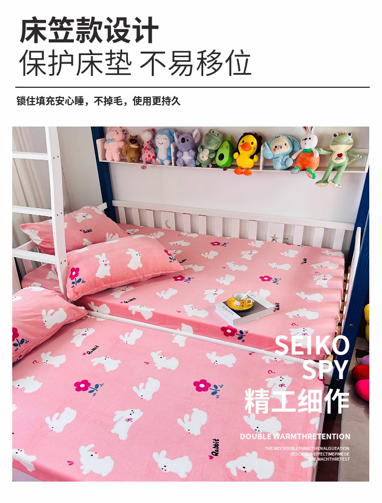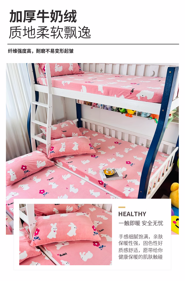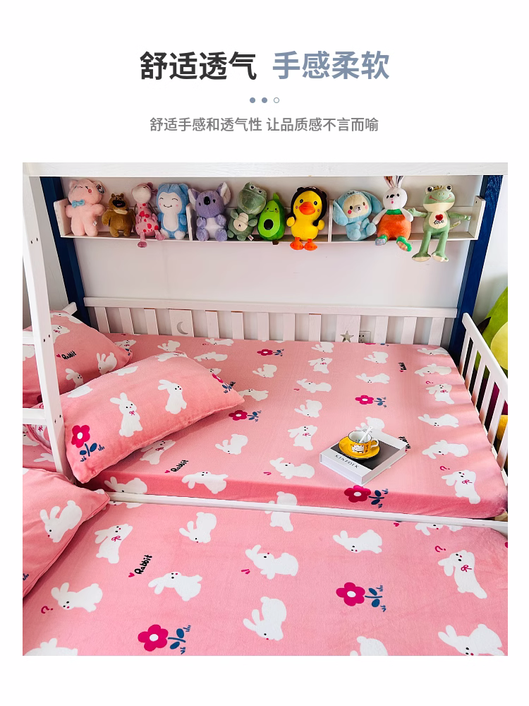 • 91家纺网 家纺一手货源 找家纺 小虾米 2023新款上下床加厚牛奶绒床笠 欢乐兔