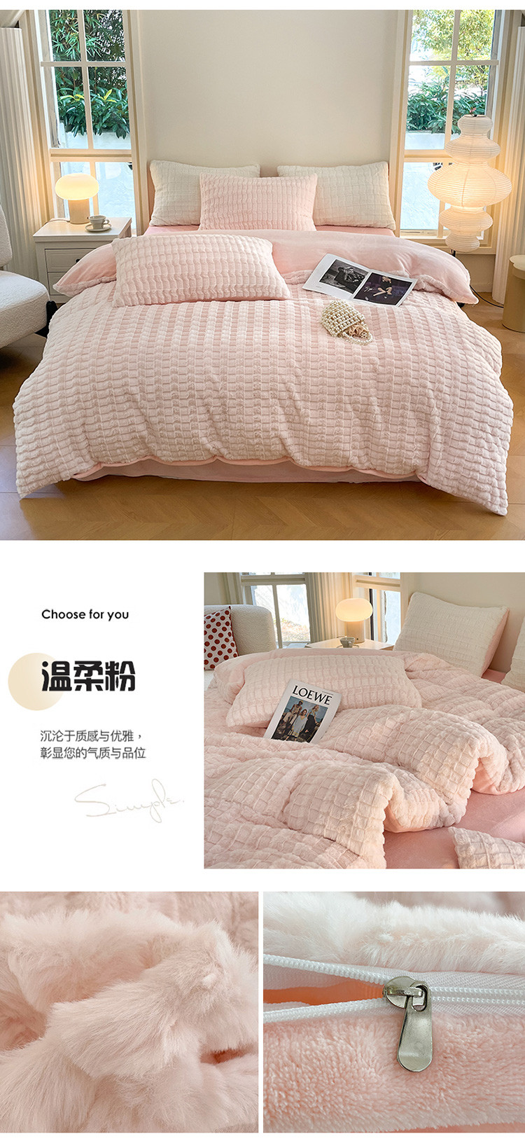 当前位置: 91家纺网 > 商品网购 > 床品套件 > 四件套 > 兔毛绒四件套 > 安哆啦加厚9斤獭兔毛绒兔兔绒剪花牛奶绒四件套纯色双拼系列 温柔粉