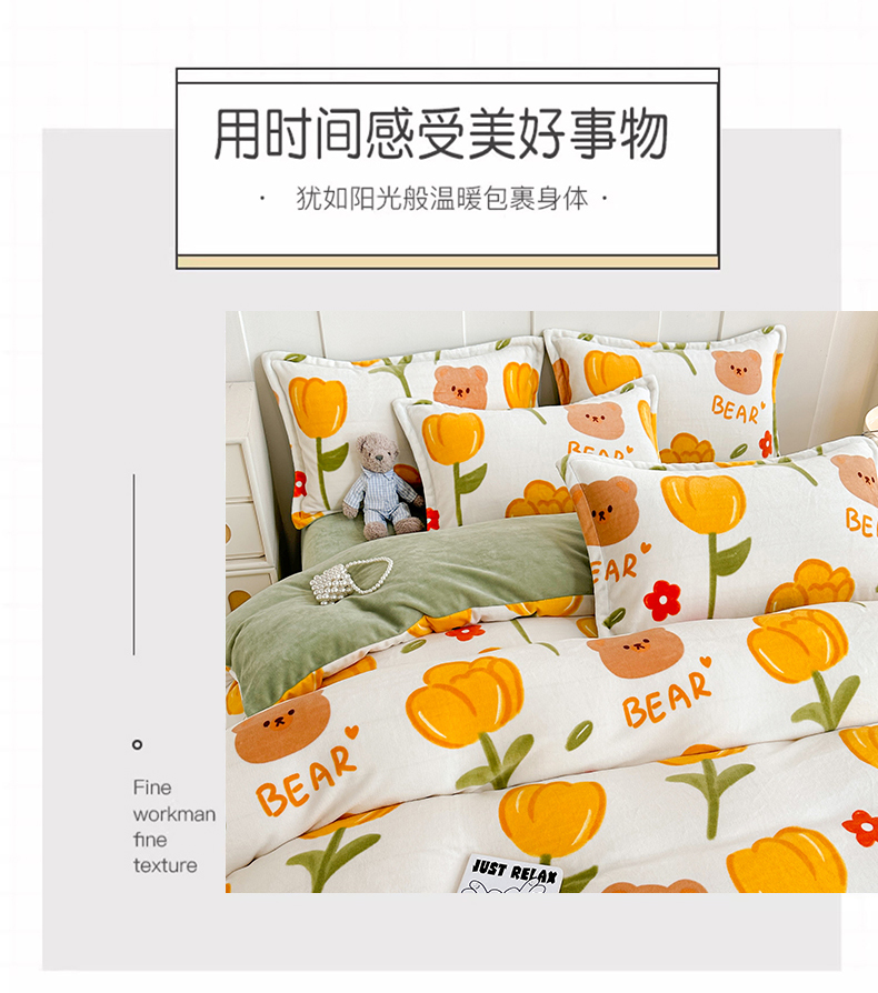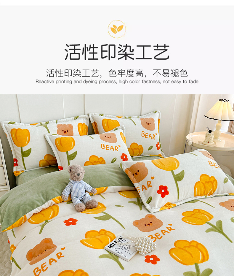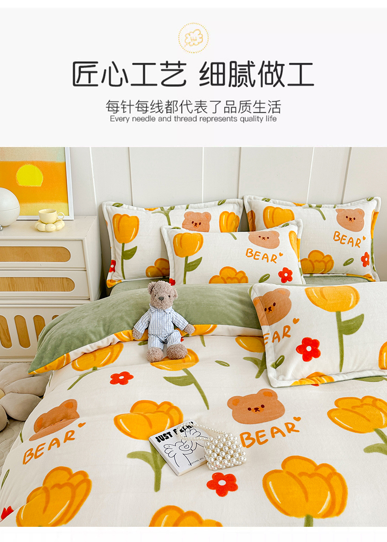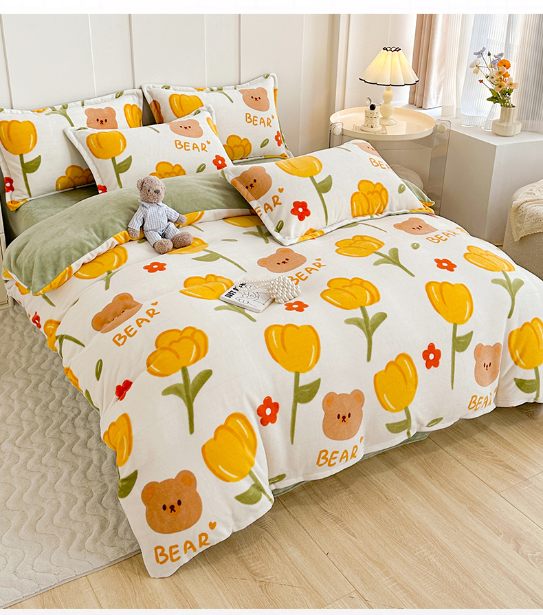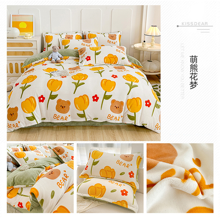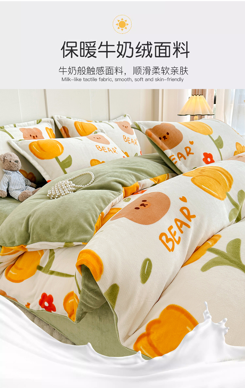 当前位置: 91家纺网 > 商品网购 > 床品套件 > 四件套 > 牛奶绒四件套 > 丫丫家纺 2023直播热款超加厚牛奶绒宝宝绒四件套单被套单人双人小清新三件套四件套 萌熊花梦