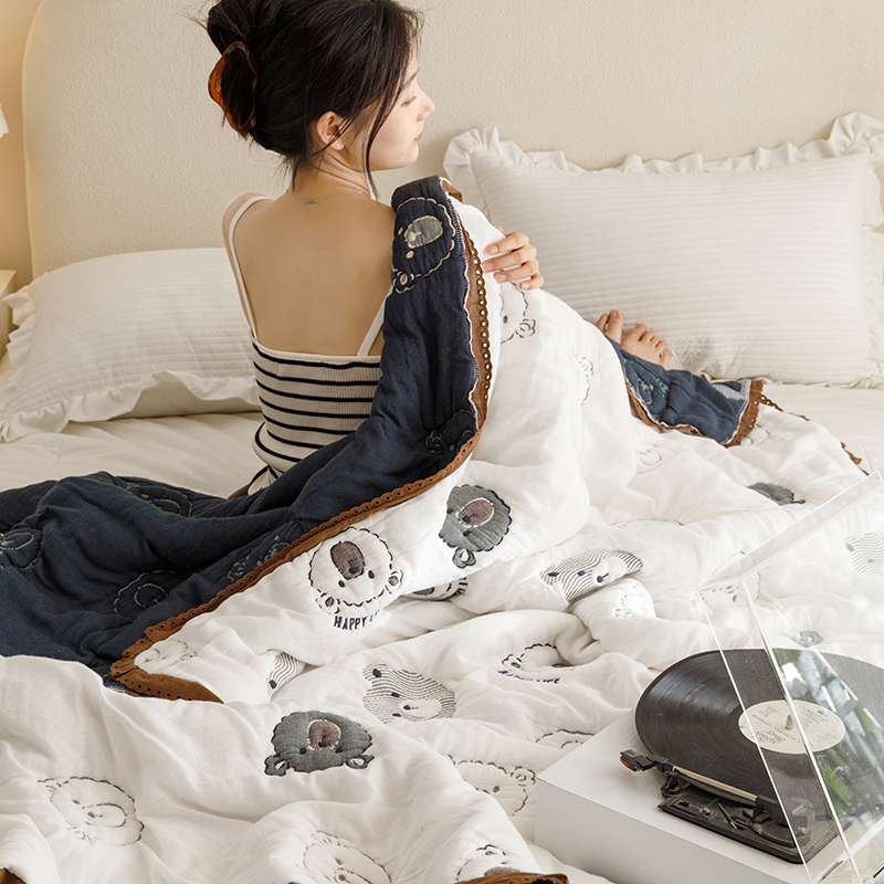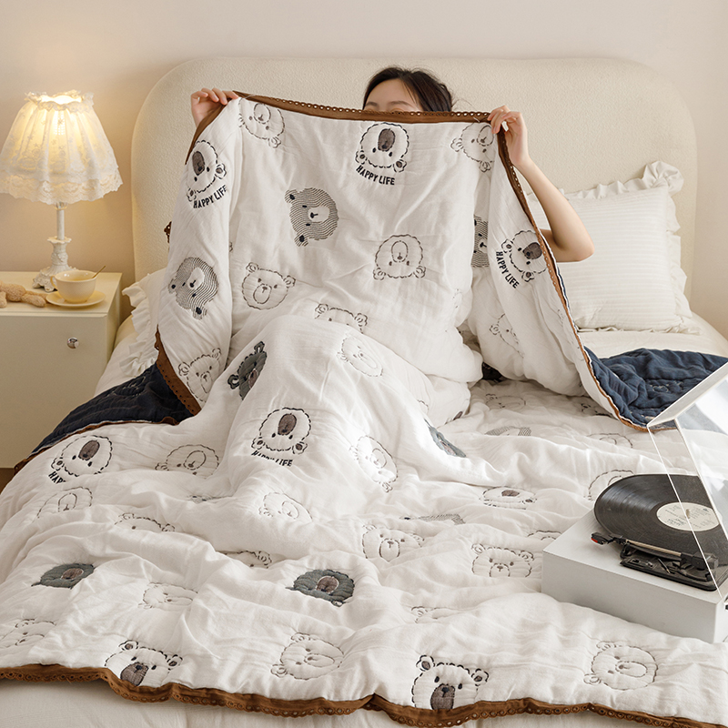(总)麻依 2023新款卡通款云朵纱泡芙被双层纱布春秋四季被子毛巾被
