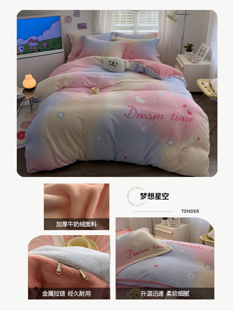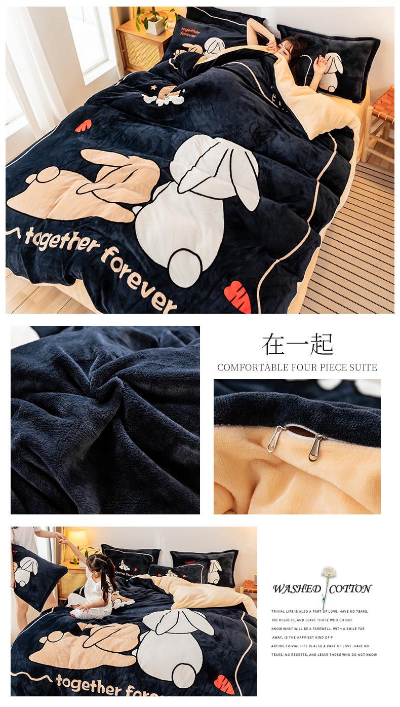 (总)宅部落 2023新款大版卡通牛奶绒四件套法莱绒三件套