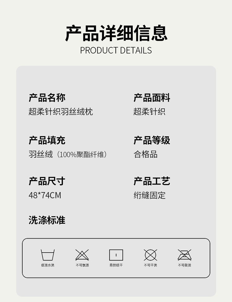 商品名称:织布人超柔针织云端羊绒纤维羽丝绒枕头护颈枕芯48*74