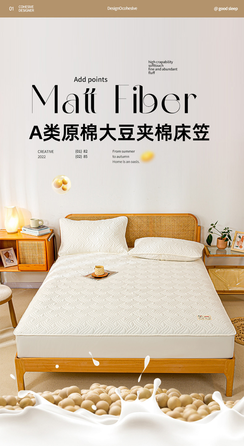 X猫先生2024新款A类原棉本色大豆纤维夹棉床垫三件套 简爱-典雅白