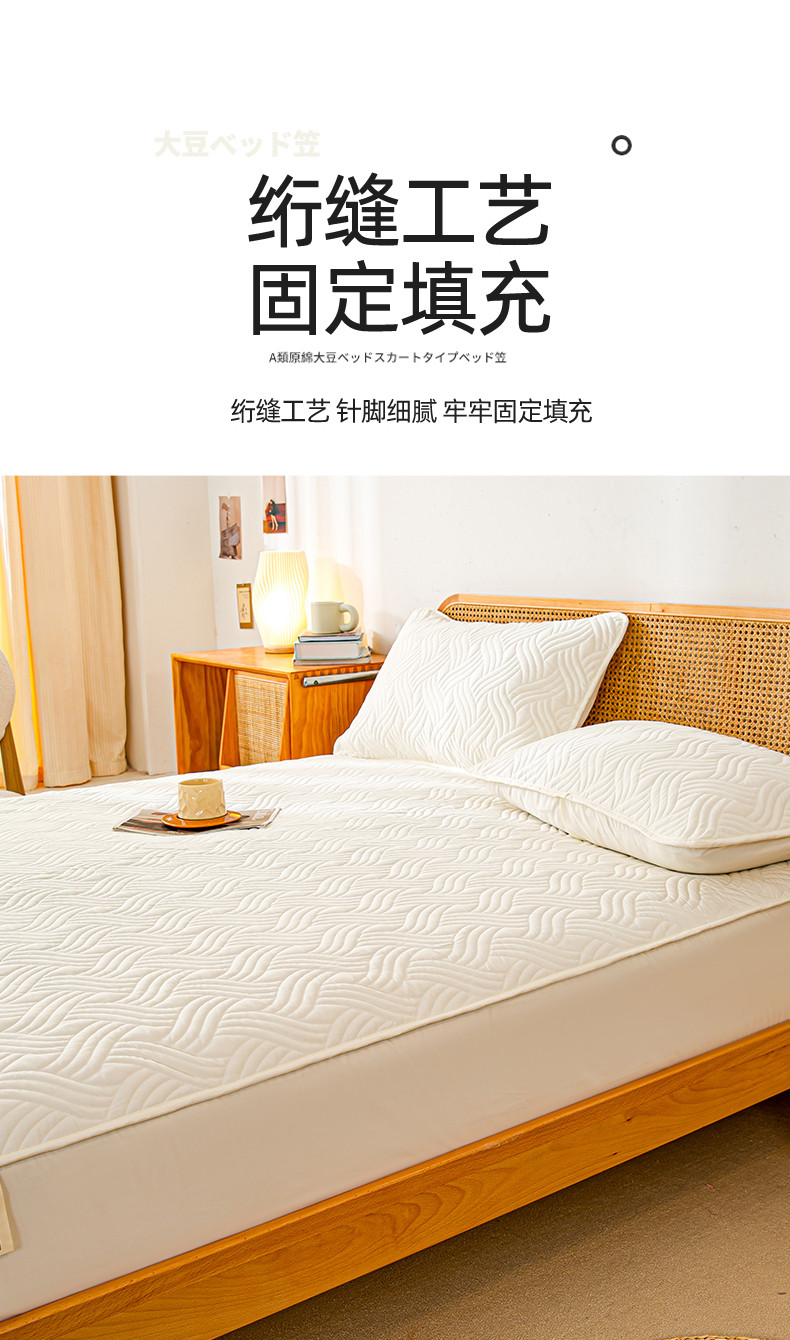 • 91家纺网 家纺一手货源 找家纺 X猫先生2024新款A类原棉本色大豆纤维夹棉床垫三件套 简爱-典雅白
