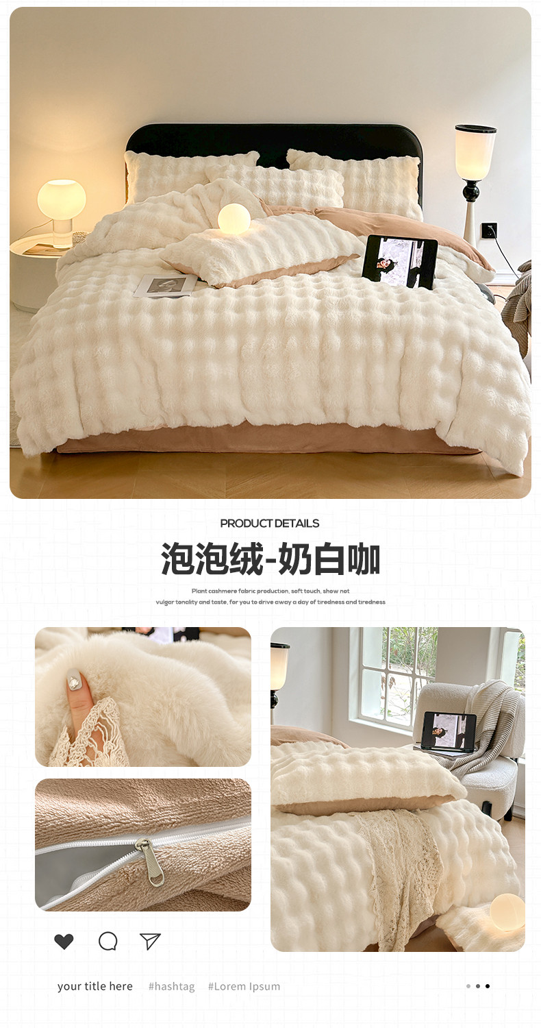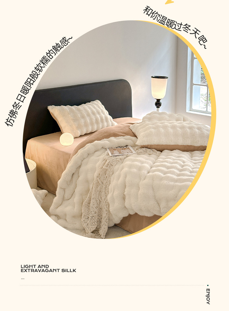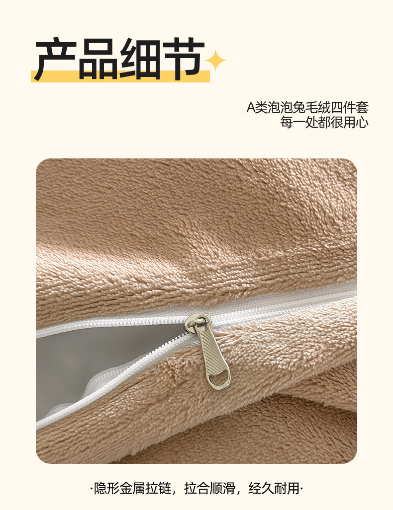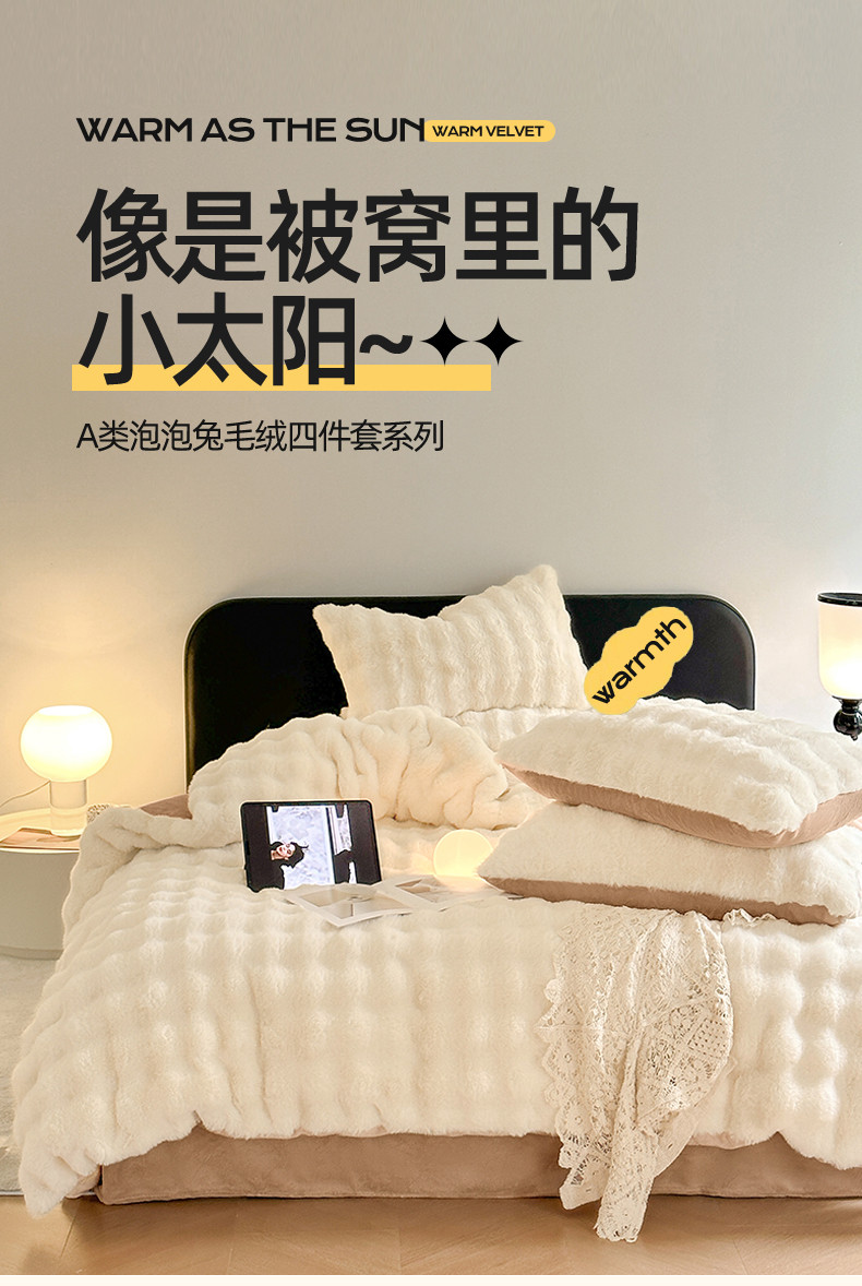 当前位置: 91家纺网 > 商品网购 > 床品套件 > 四件套 > 兔毛绒四件套 > 慕色家纺 2023新款A类泡泡兔毛绒四件套 泡泡绒-奶白咖