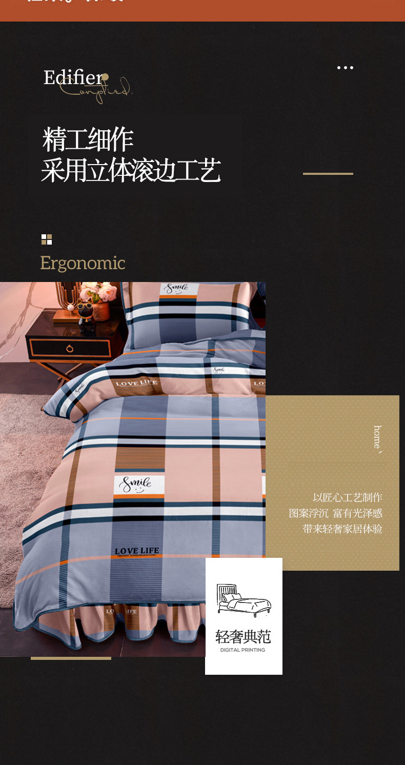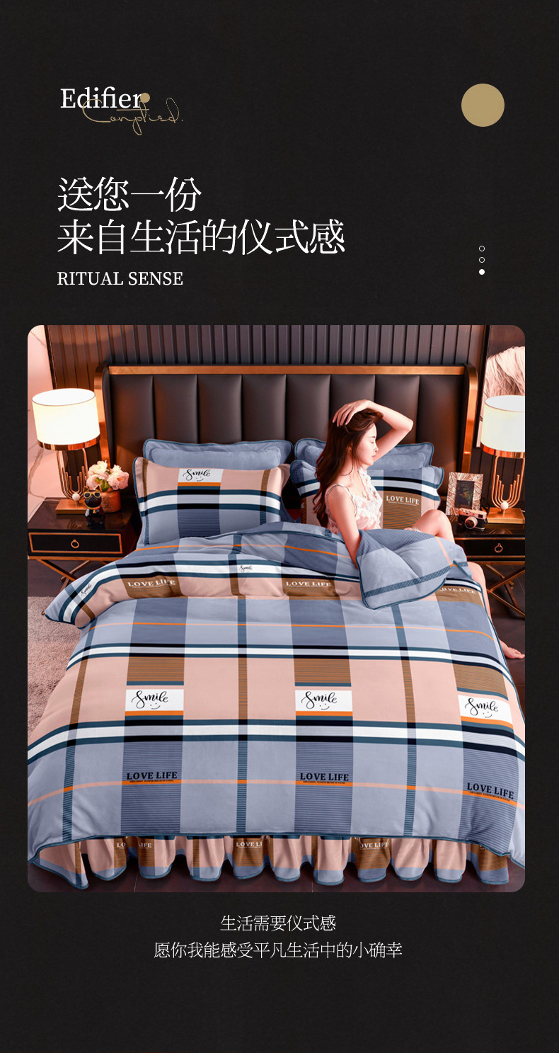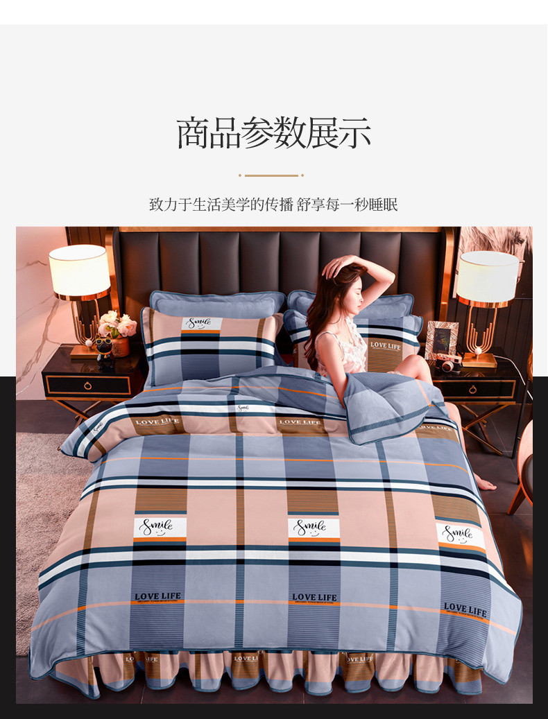 静缘分 2025新款230克特厚8.5斤牛奶绒金貂绒床裙款保暖四件套-清新雅格,清新雅格