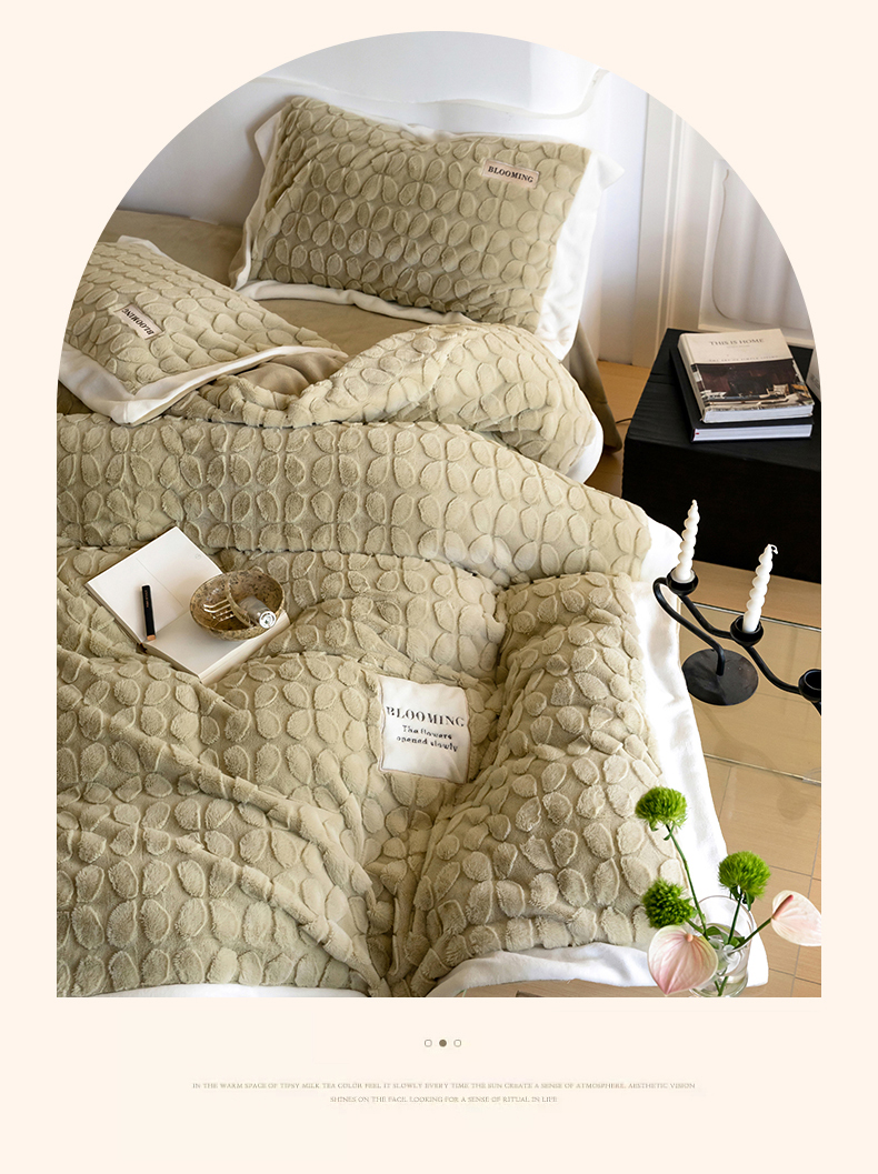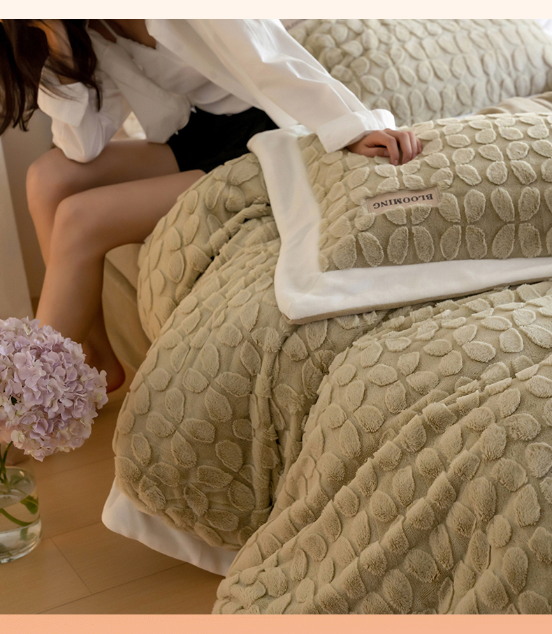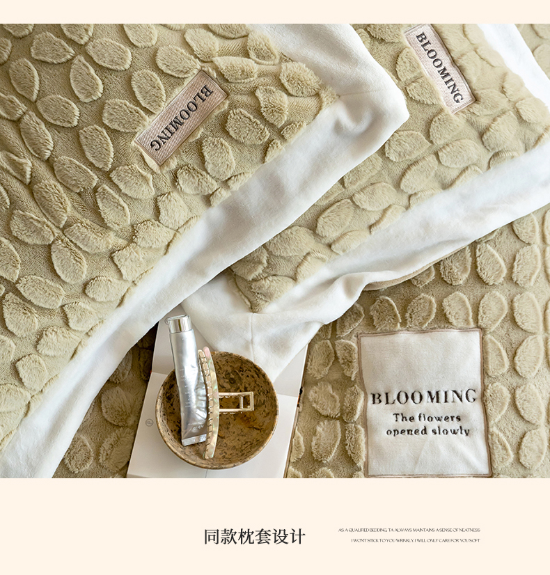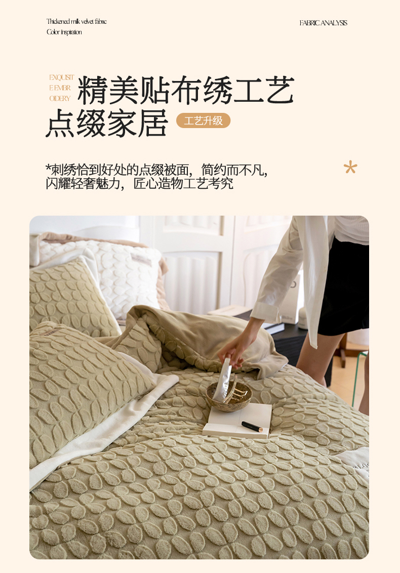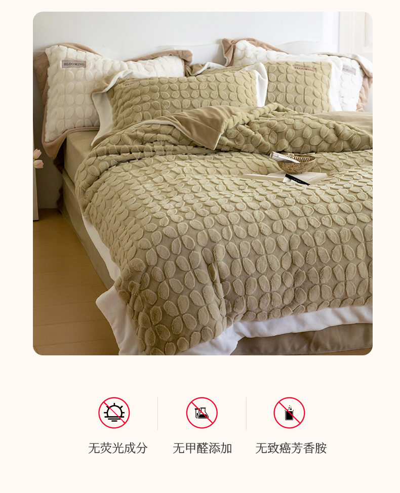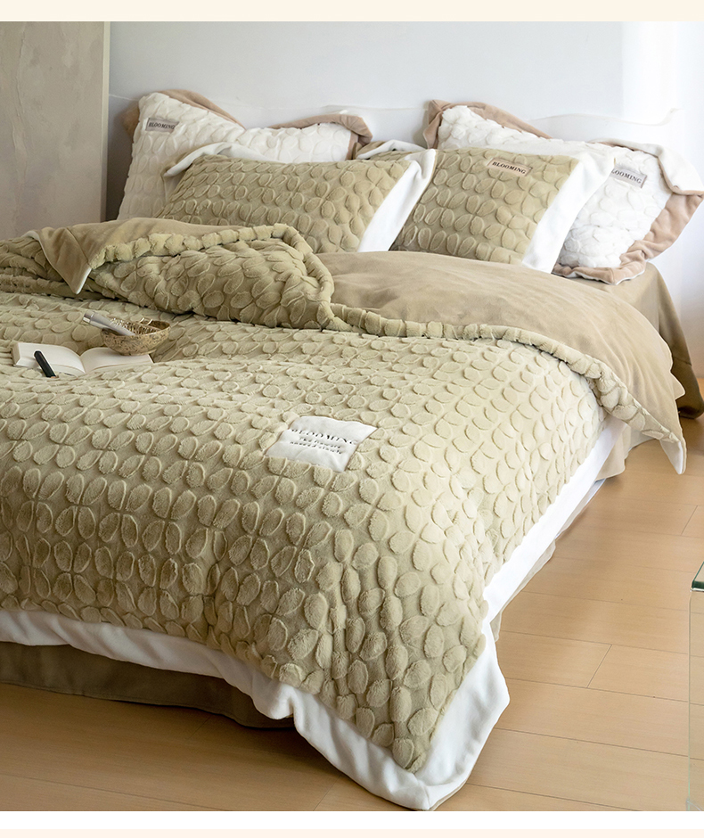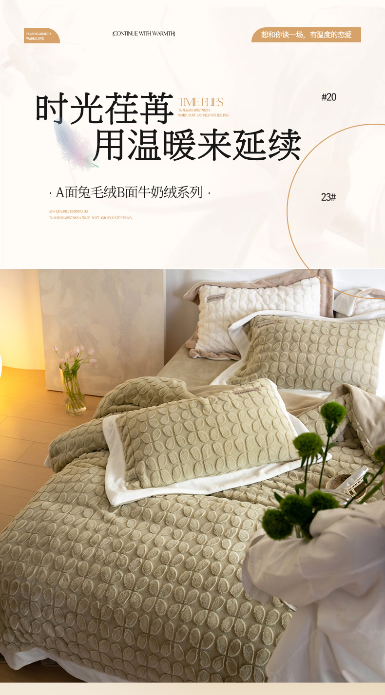 商品名称:名品优仓 2023新款A面兔毛绒B面牛奶绒系列四件套-布兰妮 抹茶绿
