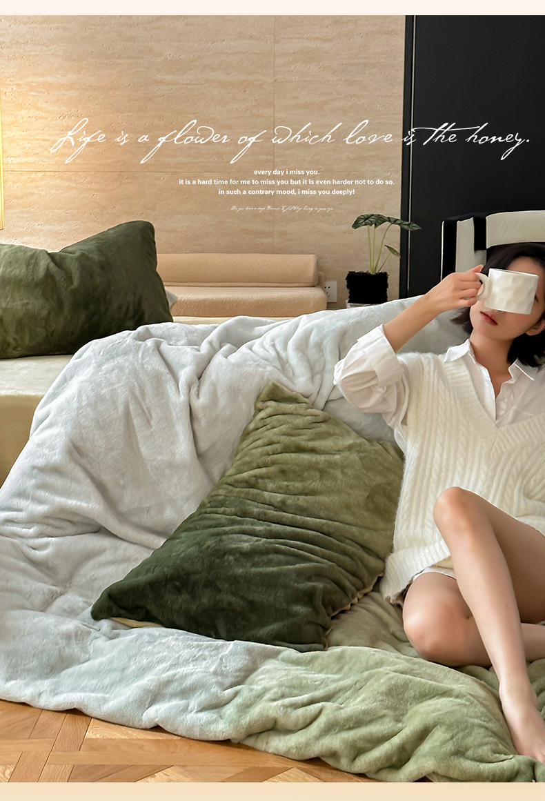 2023新款兔绒渐变款四件套-暮光之城 暮光之城 橄榄绿
